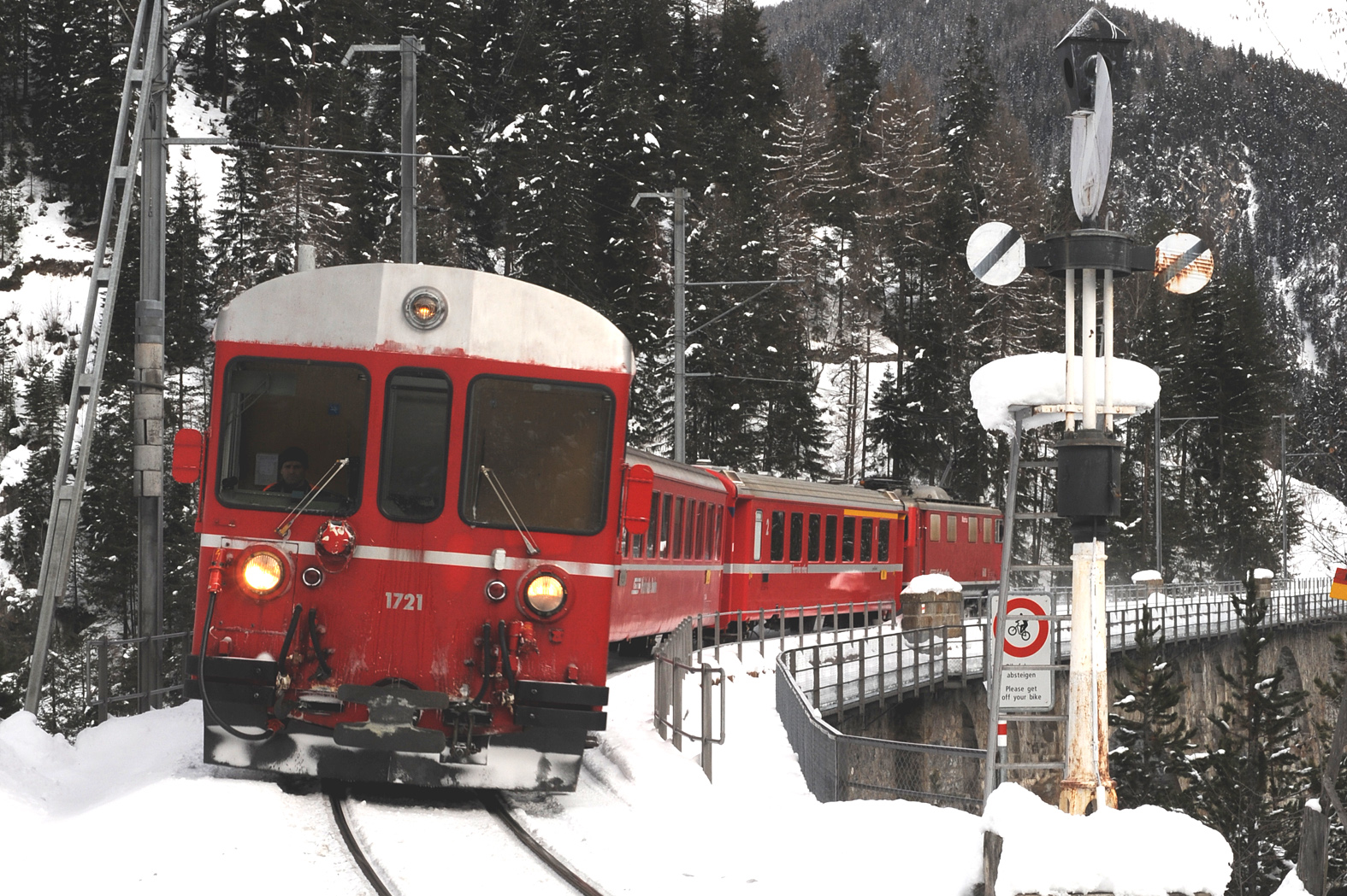 [[래티셰 철도 Ge 4/4 II|Ge 4/4 II]]가 [[비젠 고가교]]에서 푸시-풀 열차를 견인하는 모습