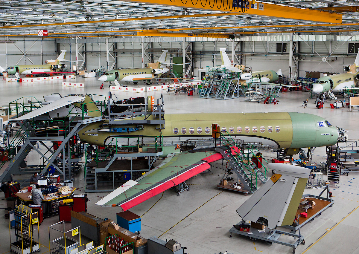 프랑스에는 9,000명의 근로자가 있으며, 전 세계적으로는 11,745명의 직원을 두고 있다. 2014년 기준으로 83개국에 사무소가 있으며, 2012년 매출액은 대략 40억유로이다. 주요 매출의 71%는 비즈니스 제트 여객기인 팰콘 판매에서 발생한다.[11]- 생클루 – 1938년경, 과거 엔진 및 전투기 공장이었으며, 현재 대형 시뮬레이션 시스템 및 기술 지사 본부이다.