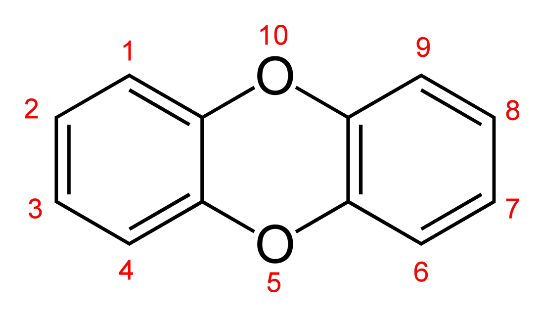 PCDDs는 75종, PCDFs는 135종의 이성질체가 존재하며, 이 중 2, 3, 7, 8번 위치에 염소 치환이 있는 경우가 아릴 탄화수소 수용체 (AH 수용체)에 대한 친화성을 가지며 독성을 나타낸다. 특히 4개의 염소는 미생물 분해를 어렵게 만든다.[4] 다이옥신 및 다이옥신 유사 PCB(DL-PCB)는 2, 3, 7, 8번 위치에 염소 치환이 있는 경우 독성이 강하다.
