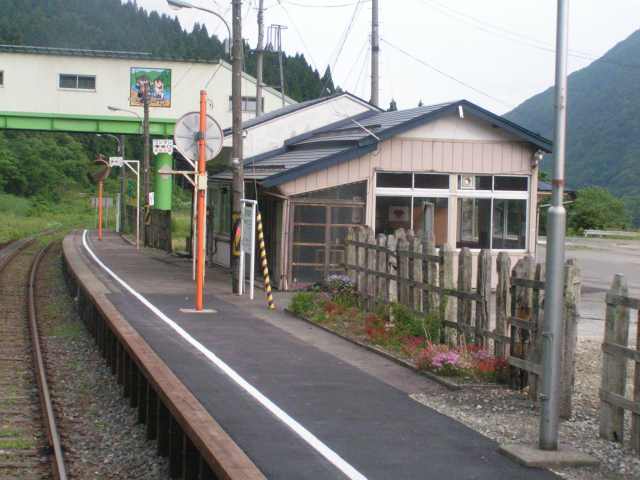 단식 승강장 1면 1선을 가진 지상역이다. 한때는 상대식 승강장 2면 2선 구조였으나, 현재는 1개 선로가 철거되어 사용되지 않는다. 기존의 낡고 작은 역사는 2009년(헤이세이 21년)에 간이 목조 조립식 대합실로 새롭게 지어졌다.