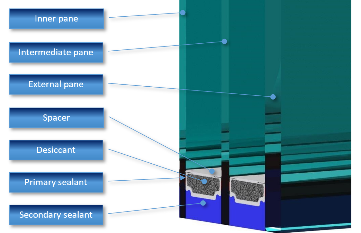 폴리이소부틸렌으로 만들어진 1차 실런트는 단열 가스가 새는 것을 방지하고 수증기가 들어오는 것을 막는 역할을 한다. 2차 실런트로는 폴리설파이드 또는 실리콘 실런트와 같은 재료를 사용하여 가장자리를 감싸 1차 실런트의 움직임을 제한한다.[28]4. 제조