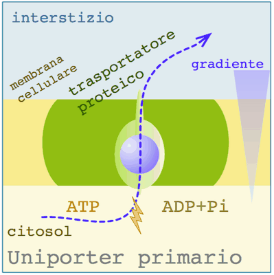 공동 수송체 및 역수송체와 달리 단일 수송체는 농도 기울기에 따라 한 방향으로 한 분자/이온을 수송한다.[28] 전체 과정은 단일 수송체에 의한 수송의 원동력이 되는 막을 가로지르는 기질의 농도 차이에 달려있다.[28] 이 과정에는 ATP 형태의 세포 에너지가 필요하지 않다.[28]