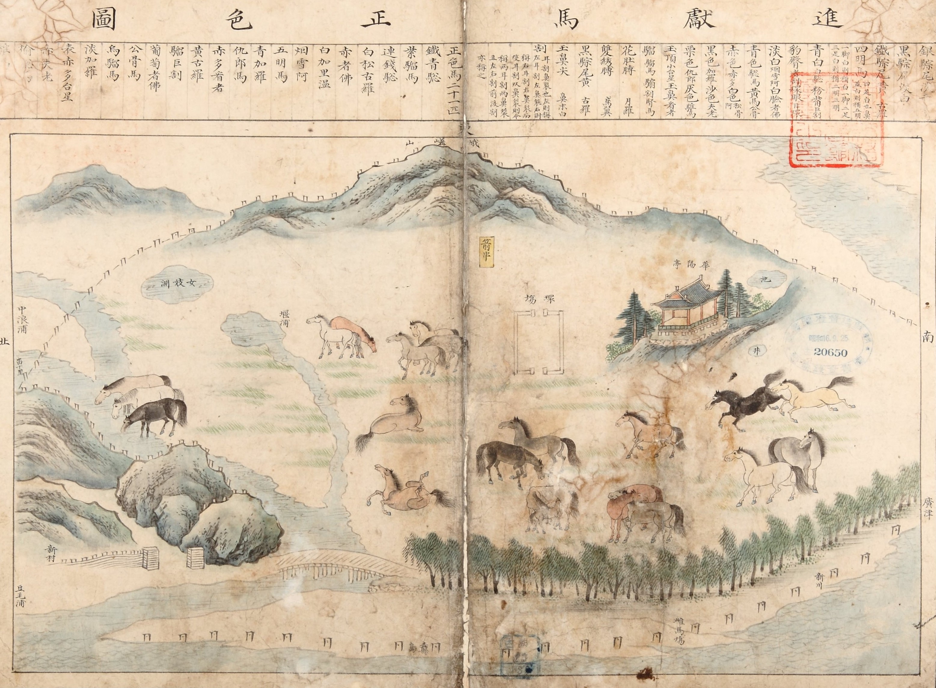 목장지도(보물 제1595호)는 국립중앙도서관과 부산대학교 도서관에 각각 소장되어 있다. 목장지도중 하나인 진헌마정색도는 진헌마정색도와 같다.