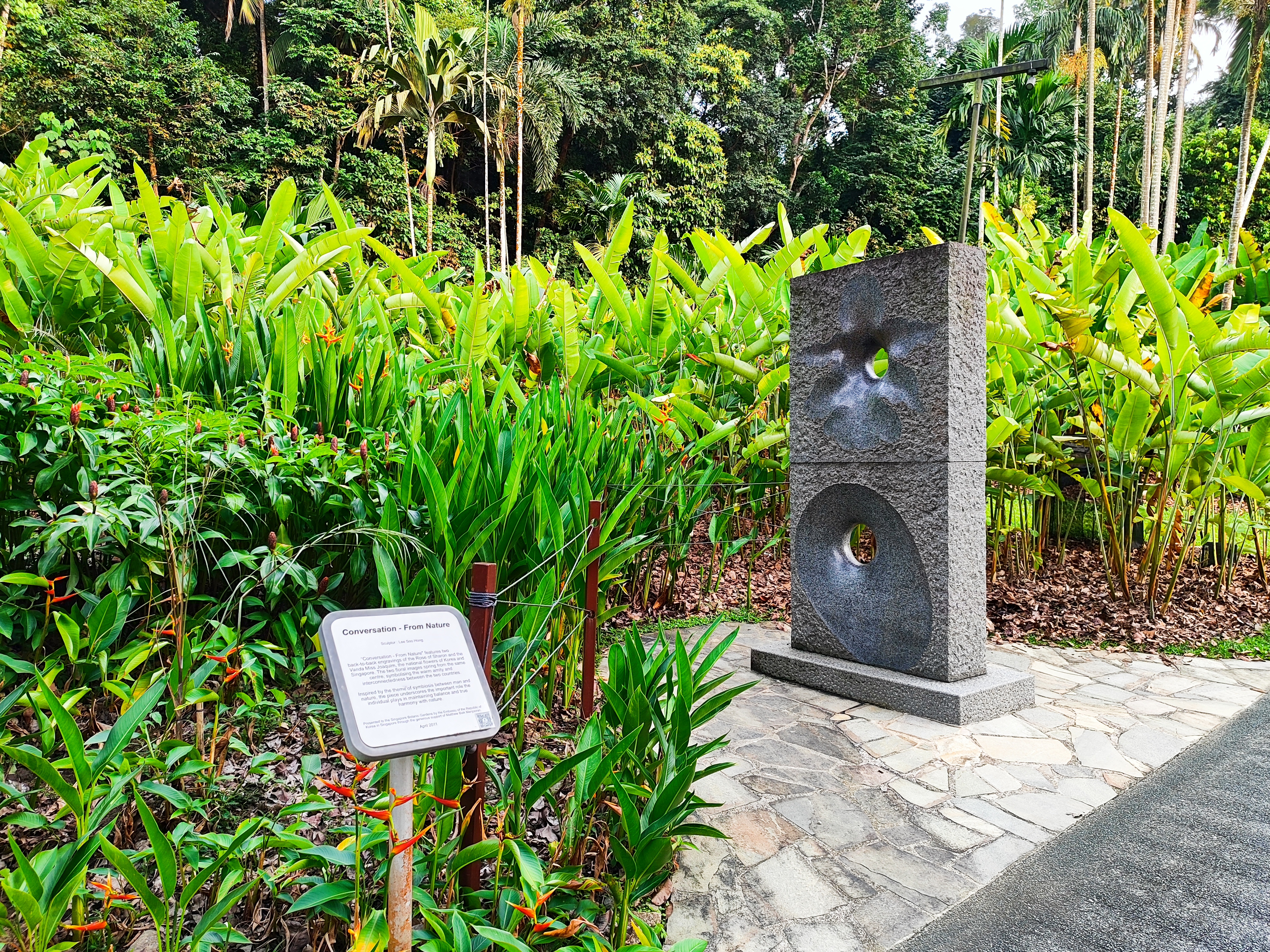 대한민국 대사관은 2011년 싱가포르의 싱가포르 식물원에 조각상 ''Conversation – From Nature''를 기증했다. 이 조각상에는 양국의 국화인 대한민국의 무궁화(Hibiscus syriacus)와 싱가포르의 반다 미스 조아킴(Papilionanthe Miss Joaquim)이 공통된 중심에서 함께 피어나는 모습이 새겨져 있다. 이는 두 나라 사이의 긴밀한 우정을 상징하며, 꽃의 둥근 중심은 양국의 소통뿐 아니라 인류와 자연 간의 대화를 나타낸다.[14]