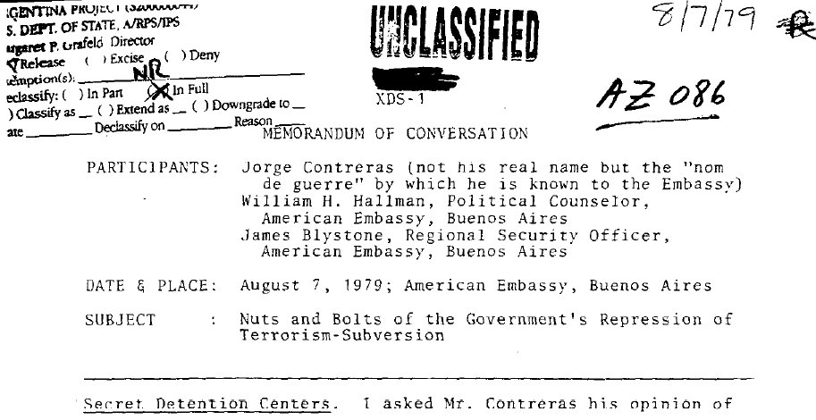 컬럼비아 대학교의 빅토리아 바수알도(Victoria Basualdo)는 대기업과 군부 간의 공모 관계를 조사하여, 수십 명의 노조 대표들이 납치되어 고문을 당하고, 종종 회사 내부에 억류되었다가 회사 제공 차량으로 은밀한 구금 센터(CDC)로 이송된 6개 회사를 확인했다. 달미네 시데르카의 경우, 공장 옆에 문으로 연결된 CDC가 설치되었으며, 아신다르에서는 이미 1975년 이사벨 페론 정부 시절부터 연방 경찰이 운영하는 구금 및 심문 센터가 존재했다.[75]