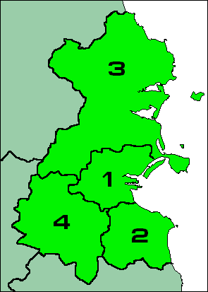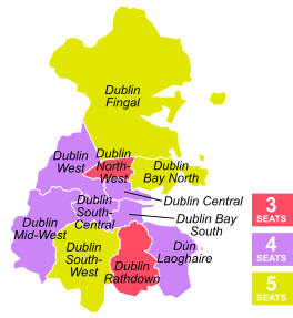 国民議会下院 | 더블린 만 북부, 더블린 만 남부, 더블린 중앙, 더블린 핑걸, 더블린 중서부, 더블린 북서부, 더블린 라스다운, 더블린 남중앙, 더블린 남서부, 더블린 서부, 던 레어리 |
