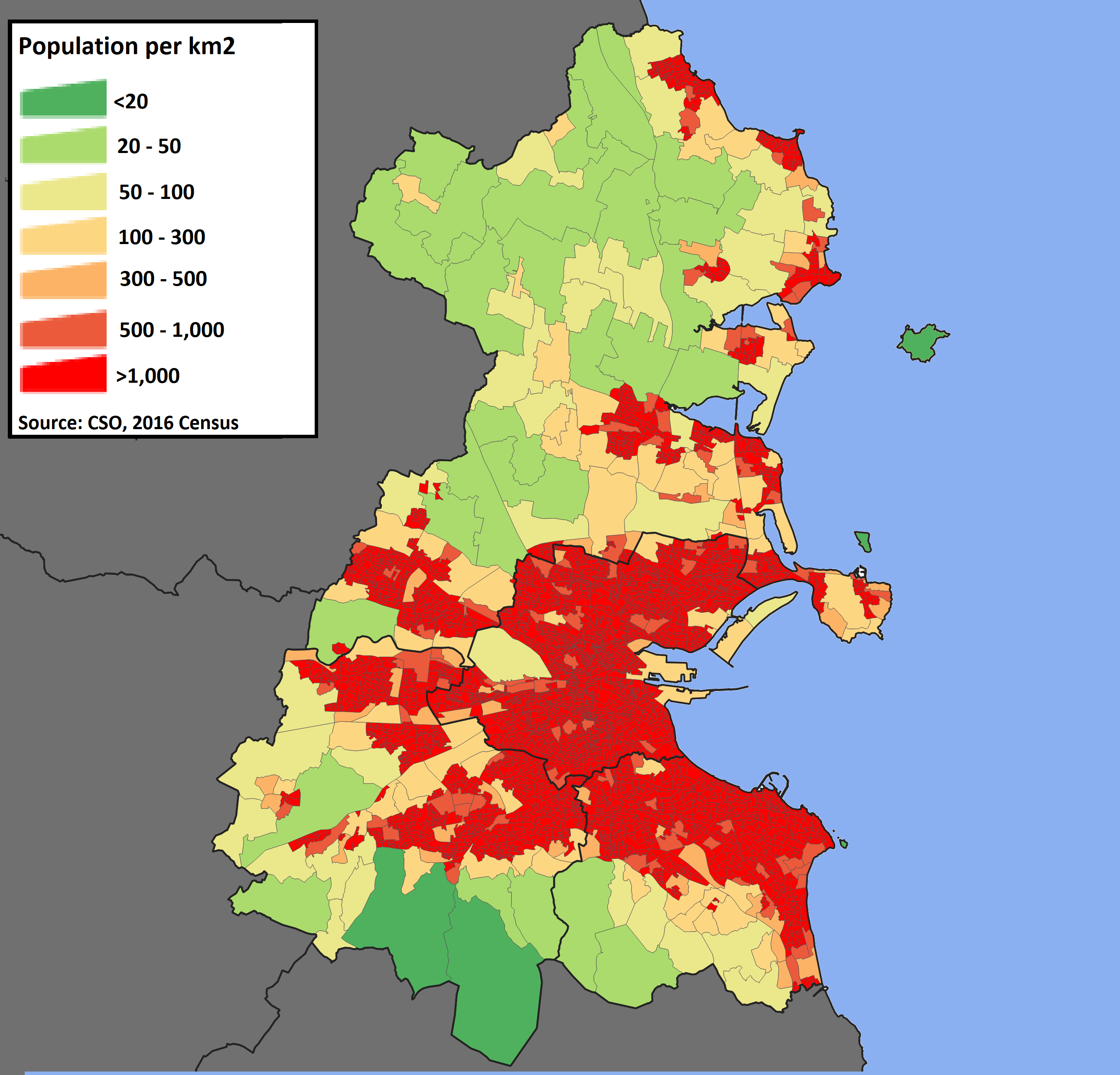 1960년대부터 더블린 시는 도시 재개발 사업과 Tallaght, Coolock, Ballymun과 같은 대규모 교외 건설을 통해 크게 확장되었다.[27] 이는 더블린 카운티의 농촌 및 도시 빈곤층을 새로운 주택으로 재정착시키는 결과를 가져왔다.[27] 1990년대 초, 더블린은 아일랜드의 켈트 호랑이 시대를 이끄는 원동력이 되었으며, 급속한 경제 성장을 이루었다. 20세기 초와는 극명한 대조를 이루며, 더블린은 21세기에 유럽에서 가장 부유한 도시 중 하나로 발돋움하여 전 세계에서 이민자와 투자를 유치했다.[28]