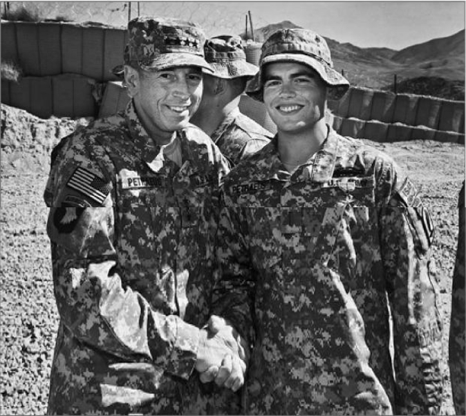 데이비드 퍼트레이어스는 1974년 웨스트포인트를 졸업하고 보병 장교로 임관한 후, 레인저 학교를 최우등으로 졸업하고 이탈리아 비첸차에 주둔한 제509공수대대 전투단에 배속되면서 군 경력을 시작했다. 이후 경보병 부대, 기갑전 부대, 부대 지휘, 참모 보직, 교육 기관 등 다양한 경험을 쌓았다.[49]
