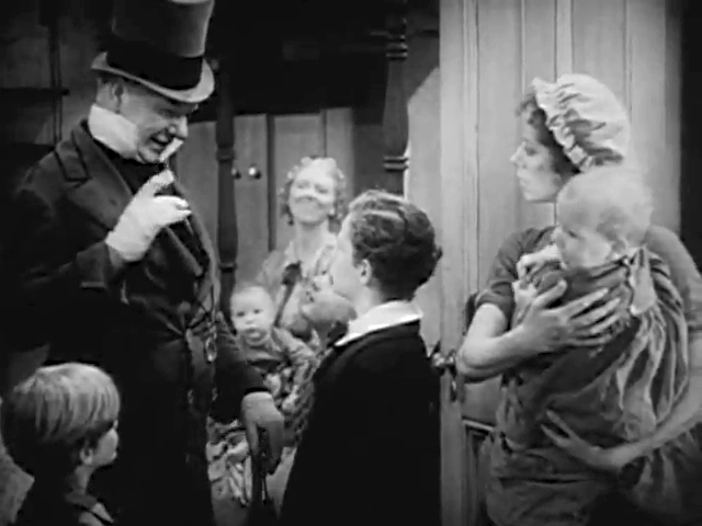 미스터 미코버(W. C. 필즈 분)가 어린 데이비드 코퍼필드(프레디 바솔로뮤 분)에게 연설하고 있다.