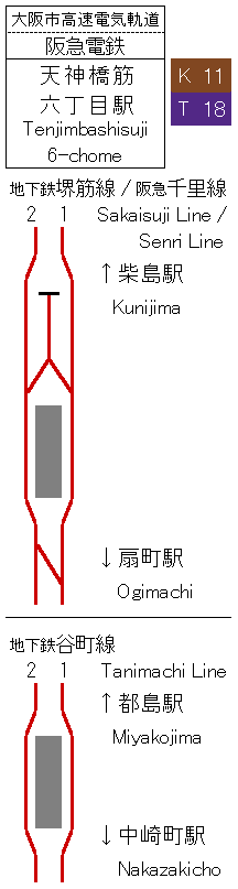 오사카 메트로 다니마치선 | 이전 역: 미야코지마 (T17) 다음 역: 나카자키초 (T19) |