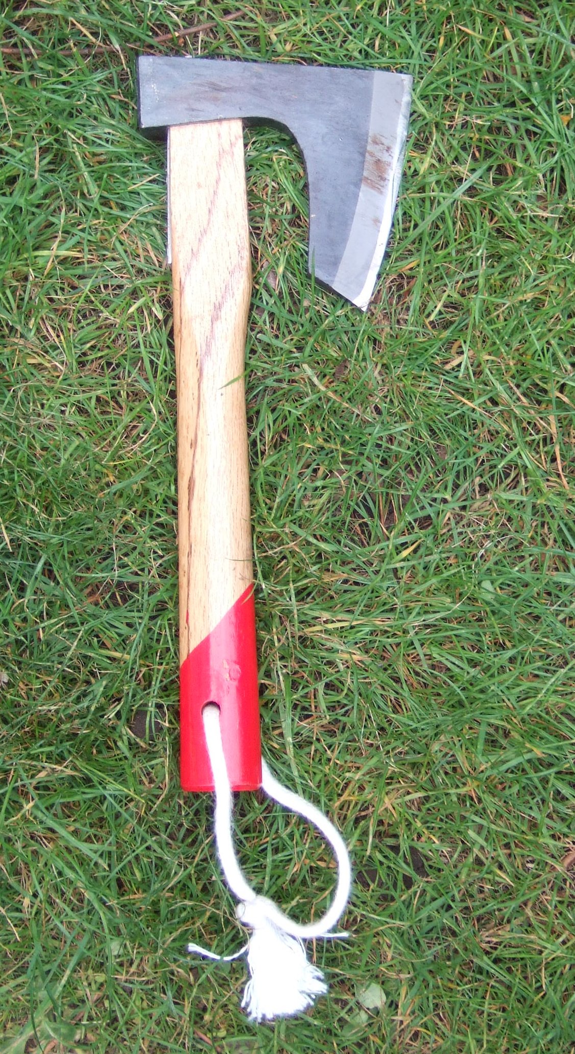 - '''목수 도끼''': 전통적인 목공 작업, 목공 이음새 및 통나무 건축에 사용되는 손도끼보다 약간 큰 작은 도끼이다. "초크" 그립을 허용하여 정밀한 제어가 가능하도록 뚜렷한 수염과 손가락 홈이 있다. 머리 부분은 망치로 사용하도록 설계되었다.[11]