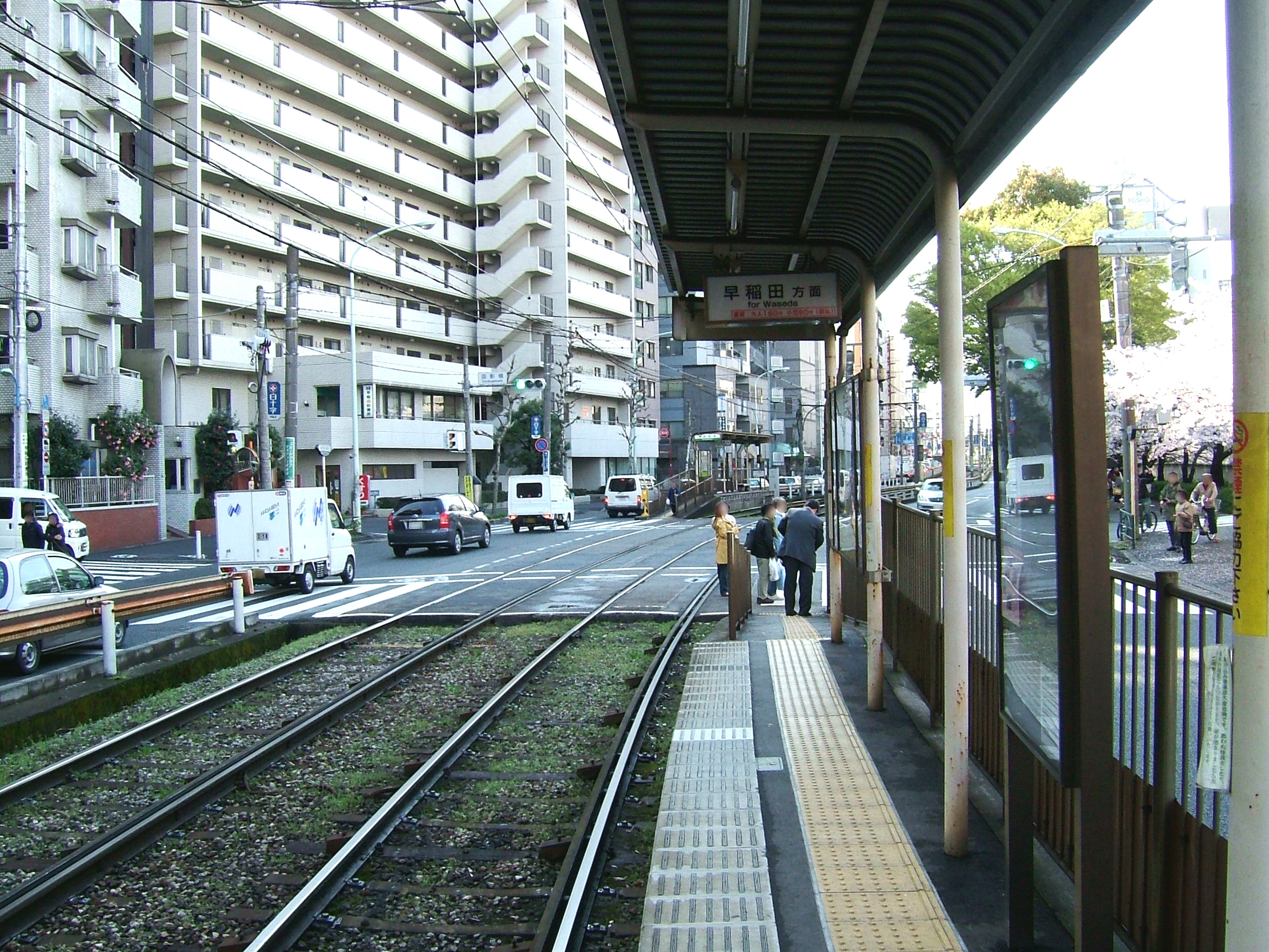 메이지 도리를 따라 강으로 향하고 비탈을 내려간다. 다카도바시에서 니이메대로 중앙 부분으로 옮기고 왼쪽(동쪽)으로 700m 정도 가면 종점인 와세다 정류소에 도착한다. 근처에는 와세다 대학이 있다. 도쿄 지하철 도자이 선 와세다 역은 직선 거리로 남쪽 약 600m 떨어져 있다.