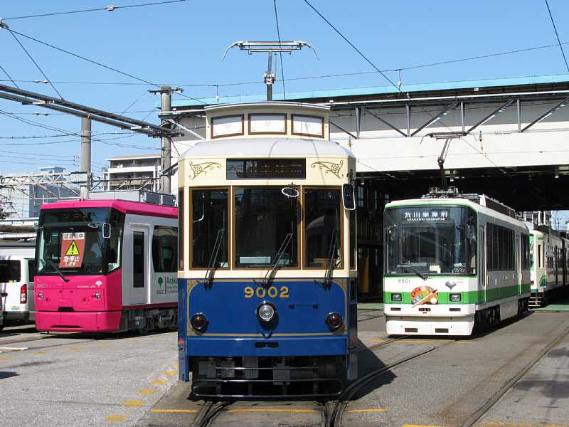 도쿄 노면 전차의 신세대 차량 3종 (아라카와 전철 영업소, 2009년 3월 10일 촬영)