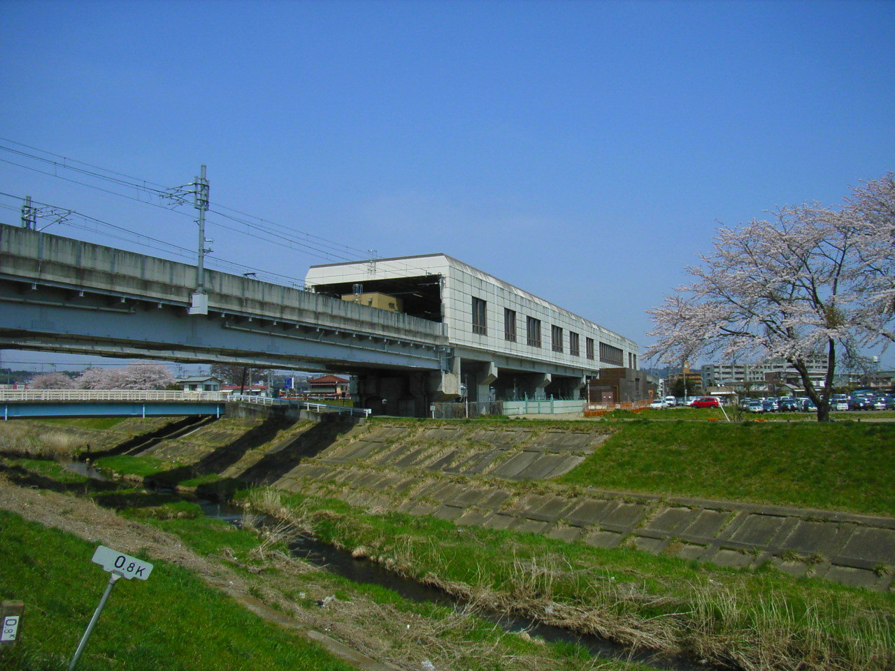 선로는 역에서 약 400m 북쪽에서 지하로 들어간다. 남쪽에서는 고가 선로가 자루 강을 넘어 차량기지로 향한다. 역의 동쪽은 오노다, 서쪽은 토미자와이며, 평지의 주택지이다.