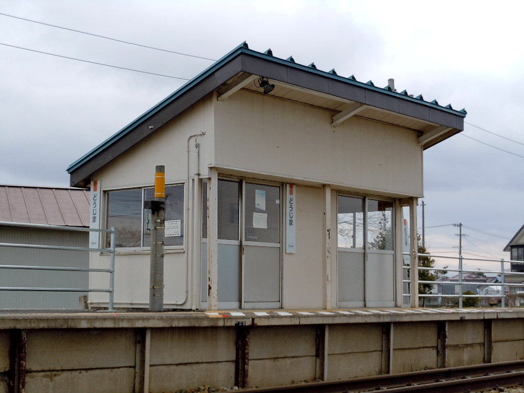 도지마역은 1934년 11월 1일에 개업한 일본 철도성 소속의 역으로, 현재는 동일본 여객철도(JR 동일본)가 관리하는 역이다. 단선 승강장 1면을 가진 지상역으로, 무인역이며 대합실이 설치되어 있다. 2024년 10월 1일부터 에키넷 Q티켓 서비스를 시작했다. 역 주변은 전원 지대이며, 인접역으로는 아이즈와카마츠역과 오이카와역이 있다.