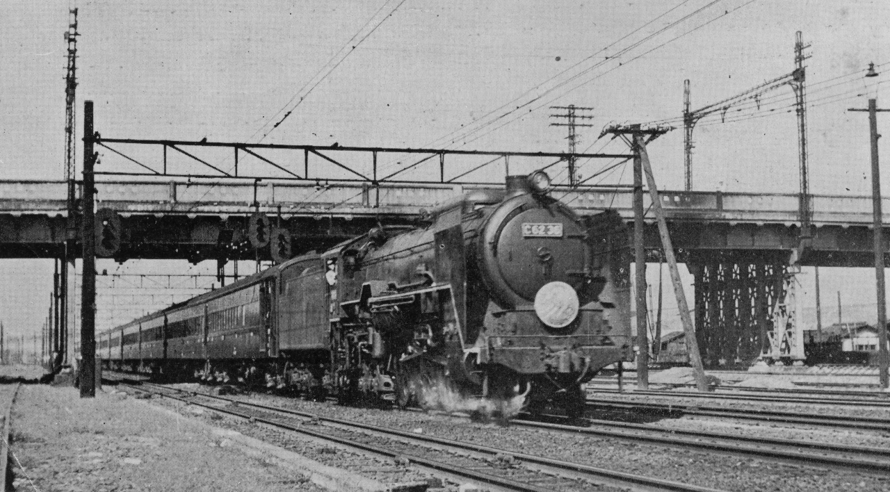 JNR C62형 기관차가 교토 근처에서 ''츠바메''를 견인하는 모습