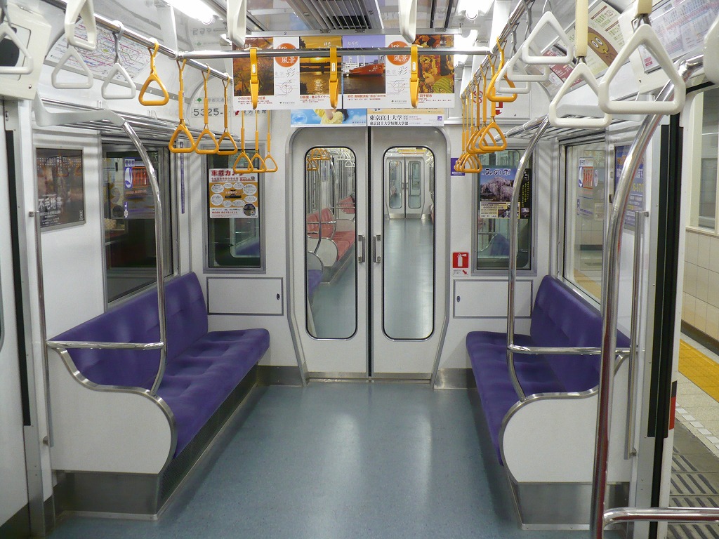 실버 시트(현 우선석)는 고령자나 장애인에 대한 존중을 표현하는 보라색으로 했다.[11][12] 1인분 좌석 폭은 문 사이의 8인용(일부 5인용) 긴 의자가 460mm이지만, 차단부는 5인용(일부는 2인용)으로 560mm로 약간 넓게 확보되어 있다. 다만, 이후에는 짙은 핑크색, 우선석은 짙은 파란색으로 교체가 진행되고 있다.