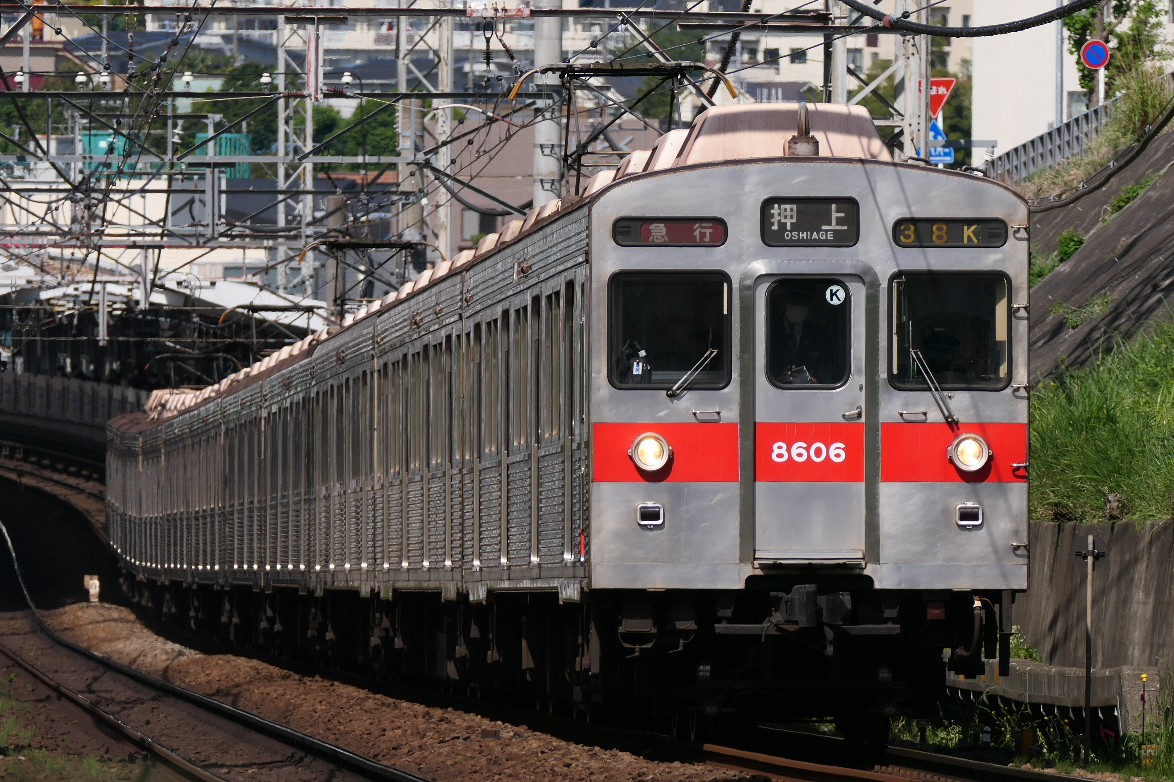 오이마치선 소속의 5량 편성 차량은 2006년 3월 18일부터 토요일·공휴일의 오이마치선-덴엔토시선 직통 급행에 사용되었다. 이 직통 급행 설정에 따라, 잘못 타는 것을 막기 위해 전면 띠 색상을 적색에서 적색→황색 그라데이션으로 변경하고, 동시에 관통문 띠 아래쪽에 오이마치선을 나타내는 인식 스티커가 부착되었다. 오이마치선 내에서의 급행 운전은 2008년 3월 28일 시간표 개정부터 시작되었고, 오이마치선 직통 급행도 모두 오이마치선의 급행용 차량인 신 6000계로 운행하게 되었다. 오이마치선 소속 8500계는 8638F를 마지막으로 운행에서 물러났다.