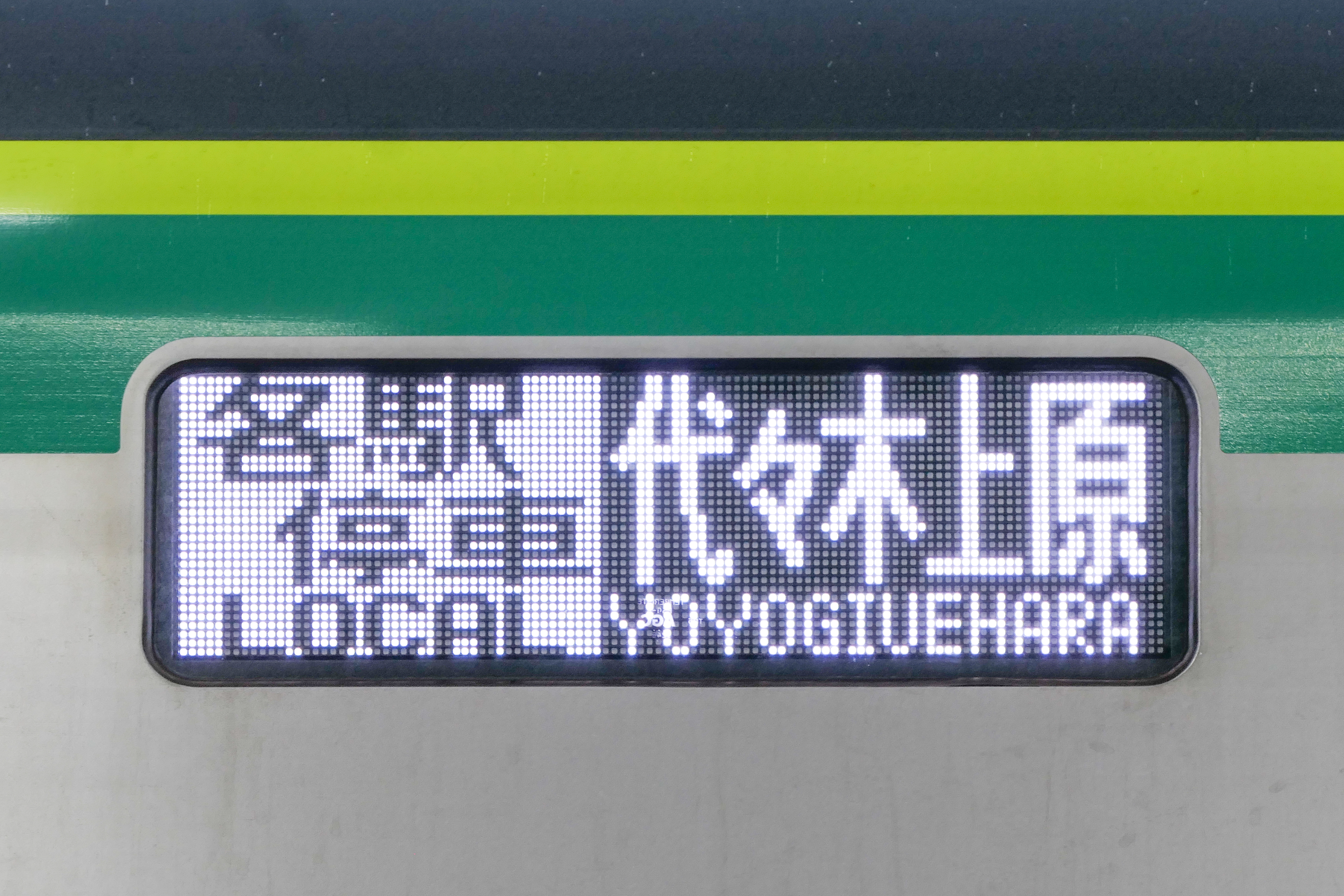 차량 외부 전면과 측면에 설치하는 행선 표시기는 15000계에 이어 종별 표시는 풀 컬러 LED, 행선 표시와 운행 번호 표시는 흰색 LED를 사용하여 시인성을 높였다. 기존 차량과 달리 '각역 정차'도 종별을 표시한다. 초기에는 JR 조반 완행선 내와 지하철 지요다 선 내 B선 아야세 이원(綾瀬以遠)으로의 조반 완행선 직통 열차에서 흰색 바탕의 '각역 정차'를 표시(차내 LCD에서는 에메랄드 그린)하고, A선의 선내 종착과 B선의 아야세 행은 종별 미표시였지만, 2018년 3월 17일 시간표 개정으로 선내에서도 파란색 바탕의 '각역 정차'를 표시하게 되었다(오다큐 선 직통의 각역 정차 포함). 오다큐의 각역 정차용 '각정'(各停) 종별도 있었지만, 이 시간표 개정으로 일신되었다. 흰색 바탕의 표시는 JR 조반 완행선 내에서만 사용하게 되었다.