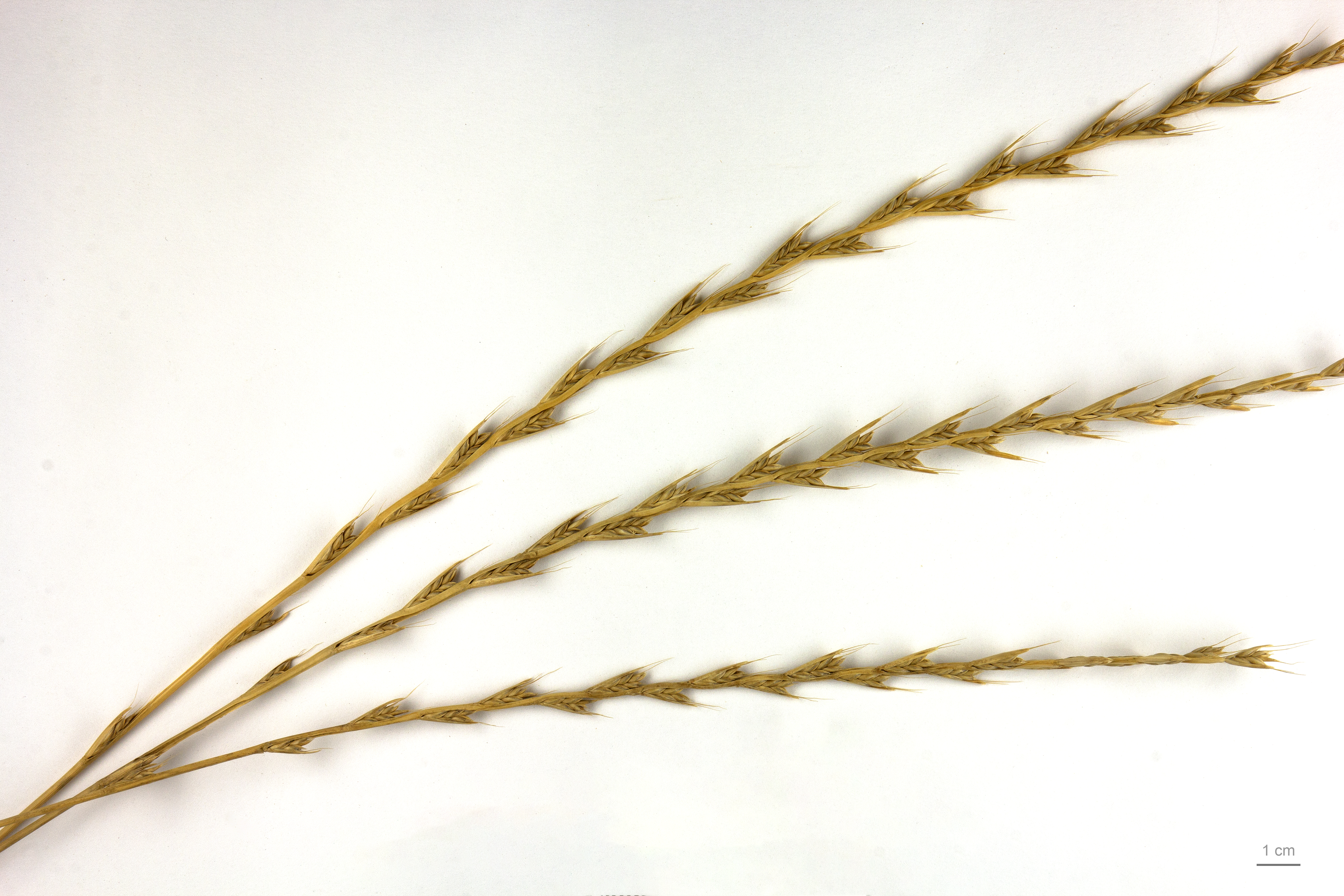 봄부터 여름에 곧게 서서 분지하지 않는 이삭을 내며, 이삭의 길이는 10-30cm가 된다. 이삭에는 자루가 없는 작은이삭이 붙고, 작은이삭은 길이 2cm 정도의 작은 꽃을 5-10개 단다. 작은이삭은 제2 포영과 길이가 같거나 약간 더 길다. 작은 꽃에는 15mm 정도의 까끄라기가 있다. 작은이삭은 이삭축보다 굵다. 이삭축은 거칠다.