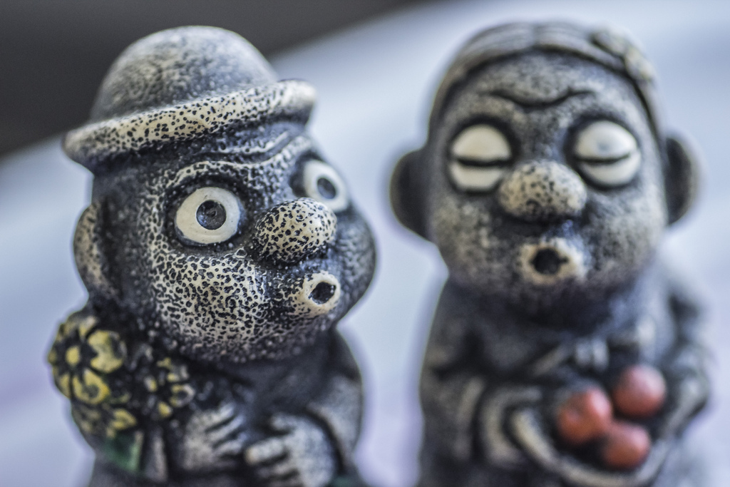 대체로 벙거지형 모자를 쓰고 입을 다문 채 싱긋 웃는 표정을 하고 있다. 동공 없이 불룩 튀어나온 눈, 크고 넓적한 주먹코가 특징이며, 양 손은 배 위에 단정히 얹어져 있는 모습이다. 일반적으로 다리와 발 등 하반신은 표현되지 않고 상반신 위주로 묘사된다.