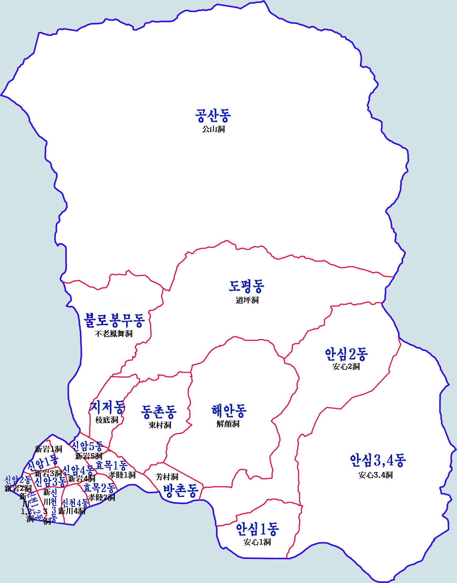 동촌동 | 東村洞 | 5.34km2 | 15,990 | 7,617 |