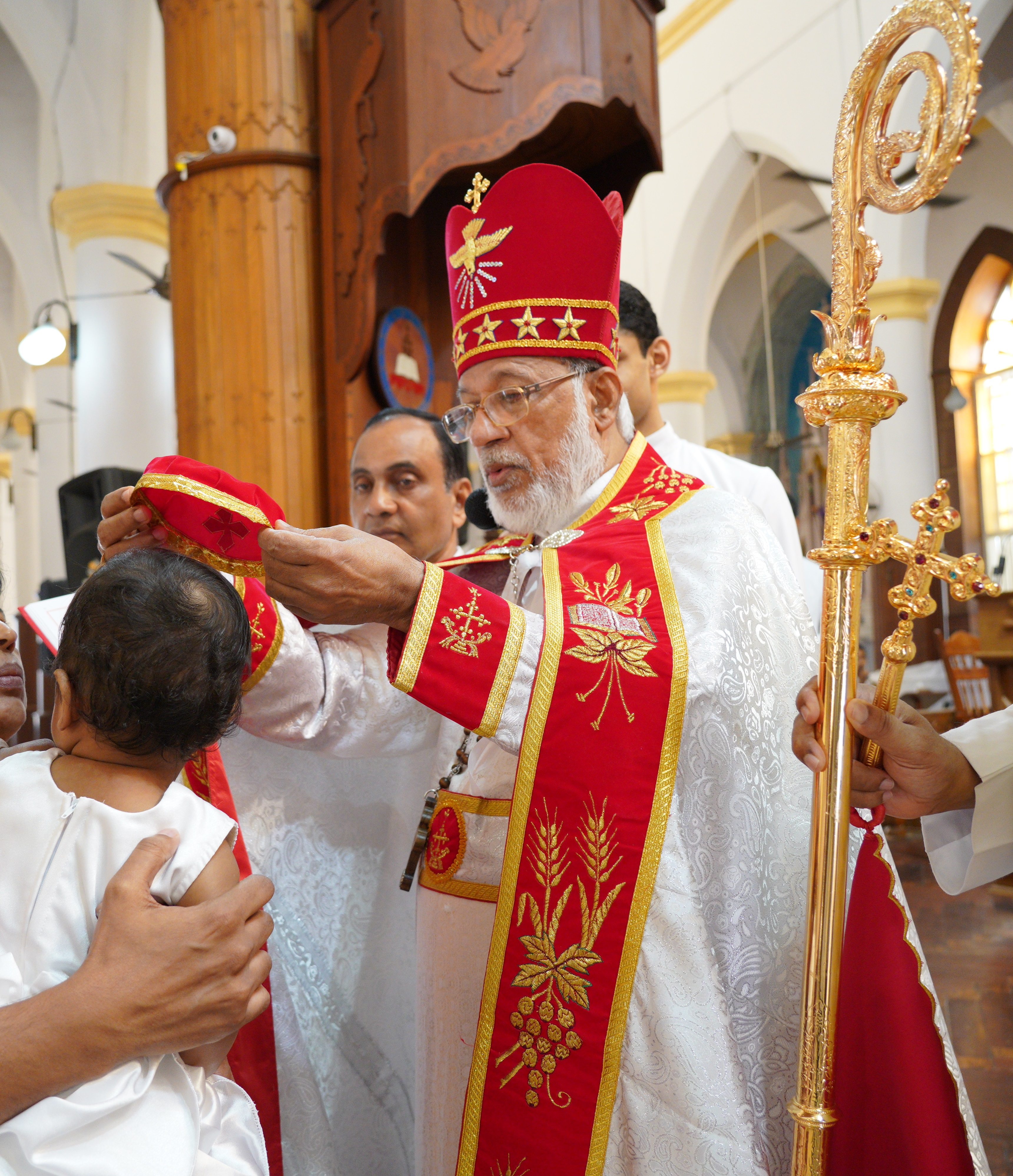 세례 예식은 성찬례를 본떠 만들어졌다. 예비신자들의 미사는 거의 동일하며, 적절한 기도문, 시편, 연도, 독서가 포함된다. 안수를 하고 기름을 바르는 의식이 이어진 후, 성소의 찬송가와 시편 등이 이어진다. 그 후에는 라쿠마라, 트리사기온, 독서(서간과 복음), 카라주타가 이어진다. 사제가 안수 기도를 드리고, 세례받지 않은 사람들을 내보낸 후, "신비의 찬송가"에 해당하는 찬송가가 이어지고, 사도신경을 낭독한다. 성스러운 뿔을 가져오고 기름을 축복하는 것은 봉헌을 대신한다. 아나포라는 수르섬 코르다, 서문, 상투스, 니티 마르(기름에 대한 에피클레시스), 새로운 기름과 성스러운 뿔의 기름의 혼합, 그리고 주님의 기도로 이어진다. 세례반을 축복하고 성유로 표시하며, 성찬 대신 세례 자체가 거행된다. 아이들은 가슴에 기름을 바르고 전신에 기름을 바른 다음, 세 번 세례반에 담근다. 세례 정식은 "N., 성부, 성자, 성령의 이름으로 세례를 받으라. 아멘."이다. 세례 후 감사 기도가 이어진다. 견진성사가 즉시 이어지며, 두 개의 기도문이 있고, "N., 이 세례를 받고, ...의 이름으로 완성되었네."라는 공식과 함께 눈 사이에 십자가를 긋는다. 이 십자가를 그을 때 기름을 사용해야 하는지는 명확하지 않다. 남은 기름은 세례반 위에 놓인 성스러운 뿔에 붓고, 세례반의 물은 이전의 축성으로부터 해제된다. 칼데아 가톨릭 교회는 로마 전례의 단념, 신앙 고백, 대부모의 응답을 추가했으며, 성유로 기름을 바른다.[11]