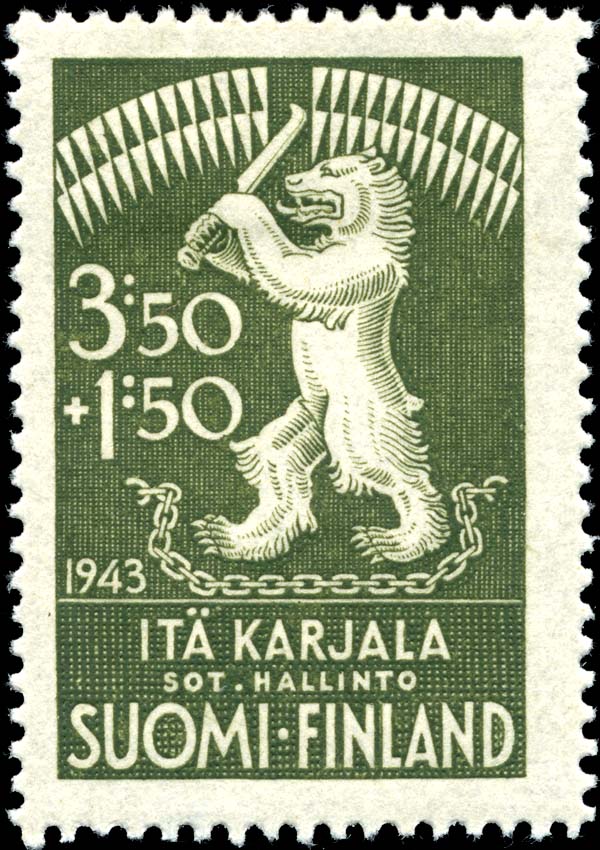 1943년, 핀란드 우체국은 동카리알라 군정청을 위해 자체 우표를 발행했다.