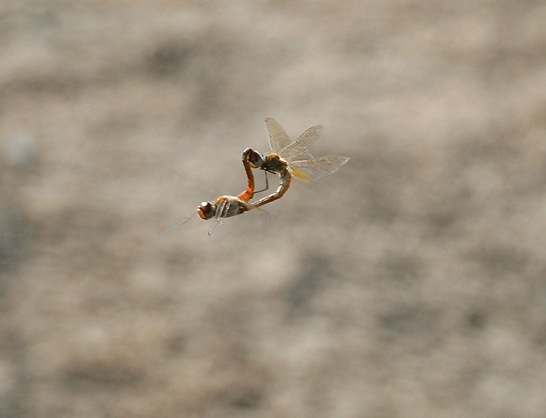 잠자리과에서 흔히 볼 수 있듯이, 뚜렷한 구애 의식은 없다. 암컷은 여러 번 짝짓기를 할 수 있지만, 보통 하루에 한 번만 짝짓기를 한다.[15]