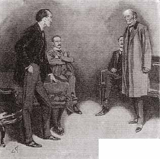 시드니 파젯의 1904년 삽화: 국무총리와 유럽 담당 국무장관이 홈즈와 상담하고 있다.