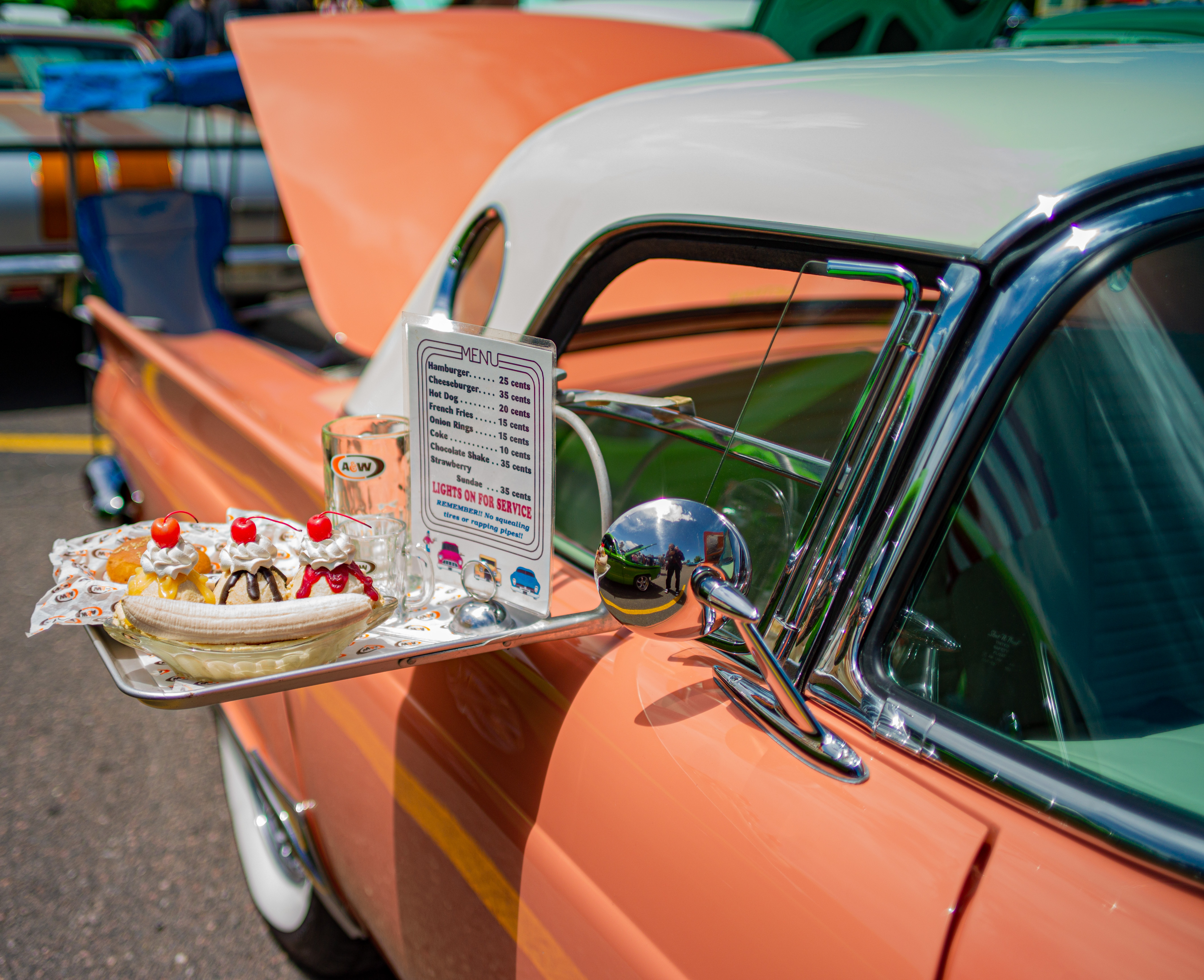 세계 최초의 드라이브인 체인점은 1921년 미국 텍사스주 댈러스에서 시작된 "피그 스탠드(Pig stand)"이다.[5] 피그 스탠드는 운전자에게 특화된 서비스를 제공하여, 카 홉이라 불리는 급사를 통해 고객이 차에서 내리지 않고도 주문부터 결제까지 할 수 있었다는 점에서 기존의 경식점과 달랐다. 이후 모터리제이션의 발달에 따라, 이와 유사한 형태의 드라이브인이 미국 전역에 보급되었다.[5]