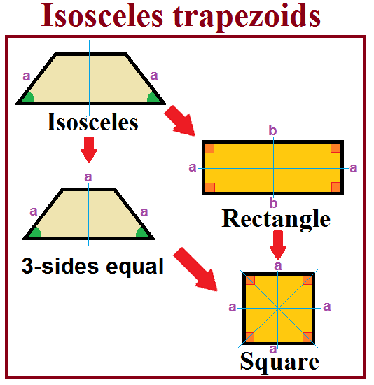 직사각형과 정사각형은 보통 등변사다리꼴의 특수한 경우로 간주되지만, 일부 자료에서는 제외하기도 한다.[3]