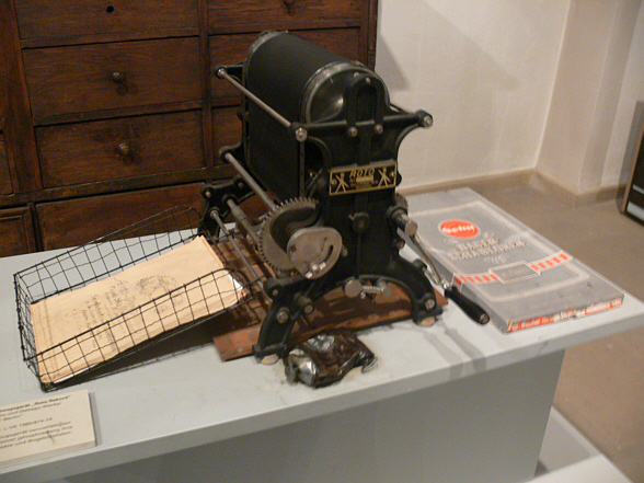 A・B・딕사는 1888년, 뉴욕의 존 브로드릭(John Brodrick)이 고안한, 타자기 타각에 의한 제판용 원지 특허(제377706호)를 사들였다. 1894년에는 제판 전용 타자기(에디슨-미메오그래프 타자기 1형)를 관련 상품으로 발매했다.