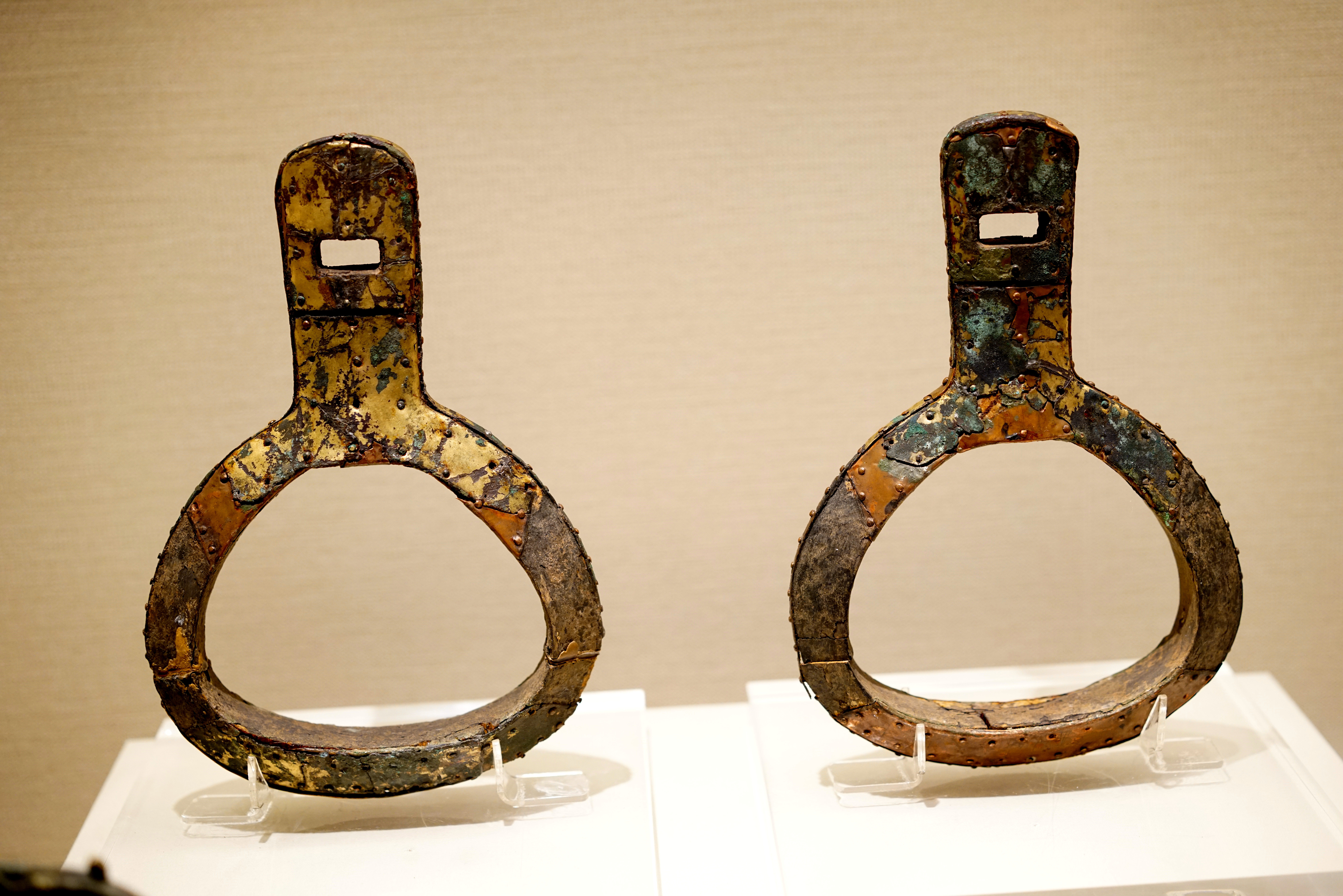 등자는 기원전 4세기경 북방 유목민족들이 처음 개발했다고 전해지며, 랴오닝성의 모용 선비 유적에서 다량의 첩갑과 등자가 출토되어 이 지역이 등자의 기원지로 주목받고 있다.[43] 중국에서는 서기 2~3세기부터 등자가 사용되었다.
