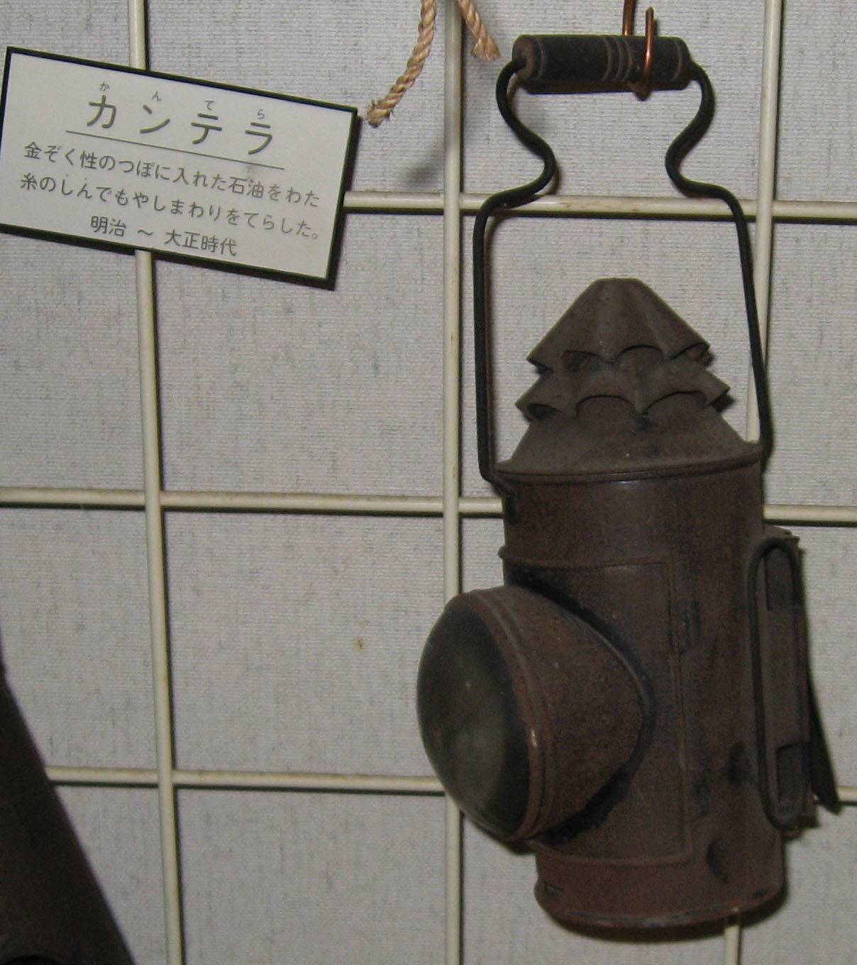 - 칸테라: Kandelaar|칸델라르nl(촛대)에서 유래한 말로, 일본에서는 건전지식 손전등이 보급되기 전까지 노동 현장에서 쓰이던 휴대용 램프를 통칭했다. 등유 외에도 아세틸렌 가스를 사용하는 것, 광산용 안전등, 머리에 쓰는 헤드램프 등 다양한 형태가 칸테라로 불렸다.