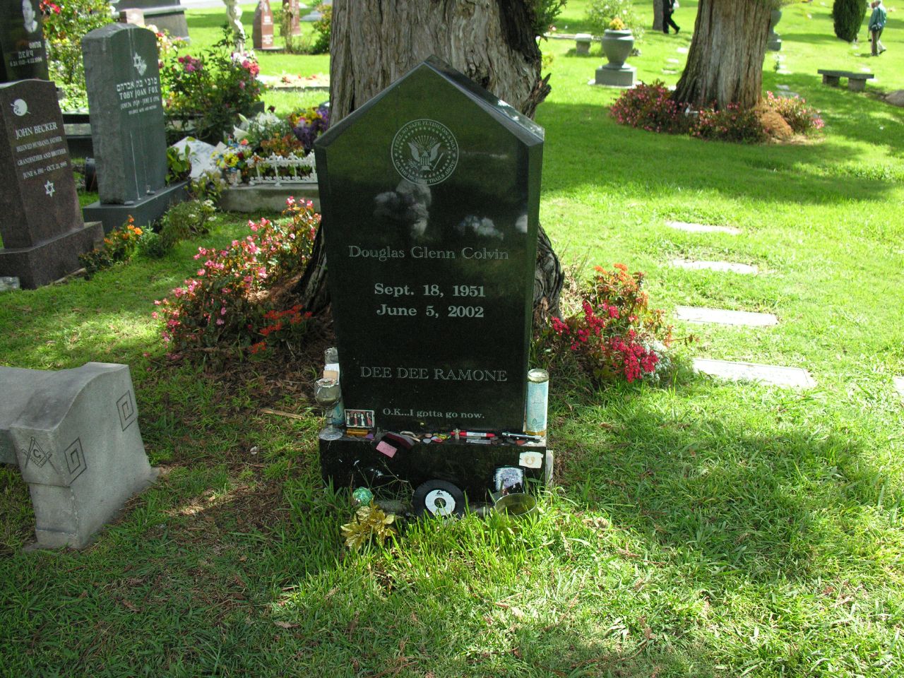 디 디 라몬은 할리우드의 할리우드 포에버 묘지에 매장되었으며, 그의 전 라몬즈 밴드 동료인 조니 라몬의 청동 기념비에서 멀지 않은 곳에 위치해 있다. 그의 묘비에는 라몬즈의 상징이 새겨져 있으며, "I feel so safe flying on a ray on the highest trails above"라는 구절은 라몬즈의 앨범 ''서브테러니언 정글''에 수록된 그의 곡 "Highest Trails Above"에서 인용되었다. 묘비 하단에는 "O.K...I gotta go now."라는 문구가 새겨져 있다.[35] 매일 많은 수의 "라몬즈 덕스"들이 디 디의 묘지로 언덕을 오른다.[36]