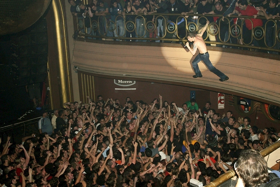 모든 라이브 콘서트의 중심에는 밴드의 보컬이자 프론트맨인 캄피노가 있다. 그는 공연 중 선동적인 행동(예: 공연장 기둥 오르기)과 몸을 사리지 않는 퍼포먼스를 보여주며, 풍자적인 멘트를 구사한다. 무대 위에서 활발하게 움직이고, 관중 속으로 다이빙하거나, 10m 높이의 헤드라이트 탑에 올라가 노래 한 곡을 부르기도 한다.