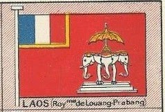 1952년부터 1975년 왕정이 무너질 때까지 라오스는 가운데에 흰 코끼리 세 마리가 그려진 붉은색 국기를 사용했다(힌두교 신 에라완(Erawan)을 나타냄). 코끼리 위에는 9단 우산이 있고, 코끼리는 5단 받침대 위에 서 있다. 흰 코끼리는 특히 미얀마, 태국, 라오스에서 동남아시아에서 흔한 왕실 상징이다. 이 깃발은 프랑스 통치하에 20세기 초 루앙프라방의 왕실에 의해 채택되었는데, 당시 태국의 유사한 국기(흰 코끼리가 하나 그려진 붉은색 국기)에서 영감을 받았다.[2]