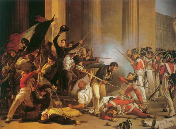 프랑스 혁명이 발발했을 때 스위스 군은 최소한 형식상 외국인으로서 내란이 발생했을 때 프랑스 군보다 더 신뢰할 수 있는 것으로 여겨졌다. 스위스 연대는 1789년 7월 초 루이 16세가 파리로 소환한 왕실 군대의 상당 부분을 차지했다. 살리스-사마데 연대의 스위스 척탄병 부대는 바스티유 감옥이 군중에 의해 포위되기 직전에 바스티유 감옥의 수비대를 강화하기 위해 파견되었다.[14] 그러나 스위스 근위대는 충성을 유지했고, 루이 16세가 이미 건물을 떠났음에도 불구하고 1792년 8월 10일 군중이 튈르리 궁전을 공격했을 때 학살당했다. 1792년 8월 20일 프랑스 의회가 통과시킨 법령에 따라 11개의 스위스 보병 연대가 해산되었다. 3,000명 이상의 스위스 병사가 개별적으로 프랑스 부대로 전출하여 계속 복무했다.[18]