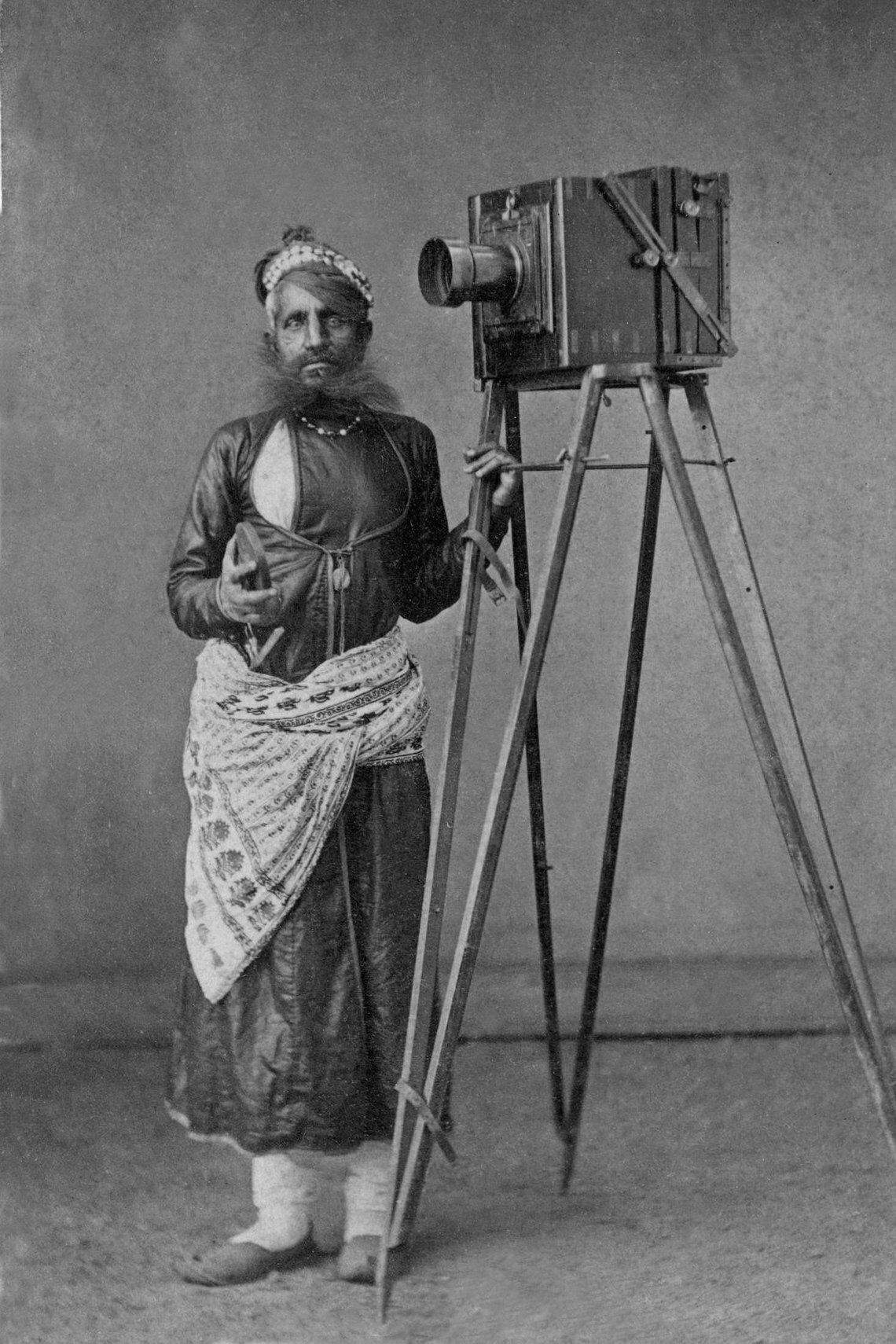 인도 사진의 파생물 중 하나는 칠해진 사진 초상화였다. 서양의 채색 사진에서 유래된 이 혼성 제작물은 때로는 강렬하게 표현되었고, 때로는 구아슈나 유화로 덧칠해져 원래 인쇄물을 가리기도 했다. 사진의 부상은 많은 예술가들이 카메라 연구에서 작업하고, 그들의 그림이 새로운 매체의 미학을 통합하게 만들었다.