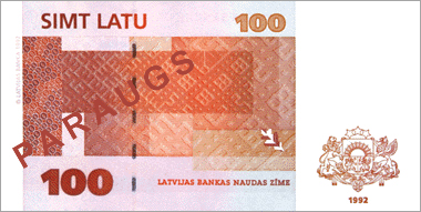 100 라츠 지폐와 500 라츠 지폐는 상대적으로 희귀하게 유통되었다.