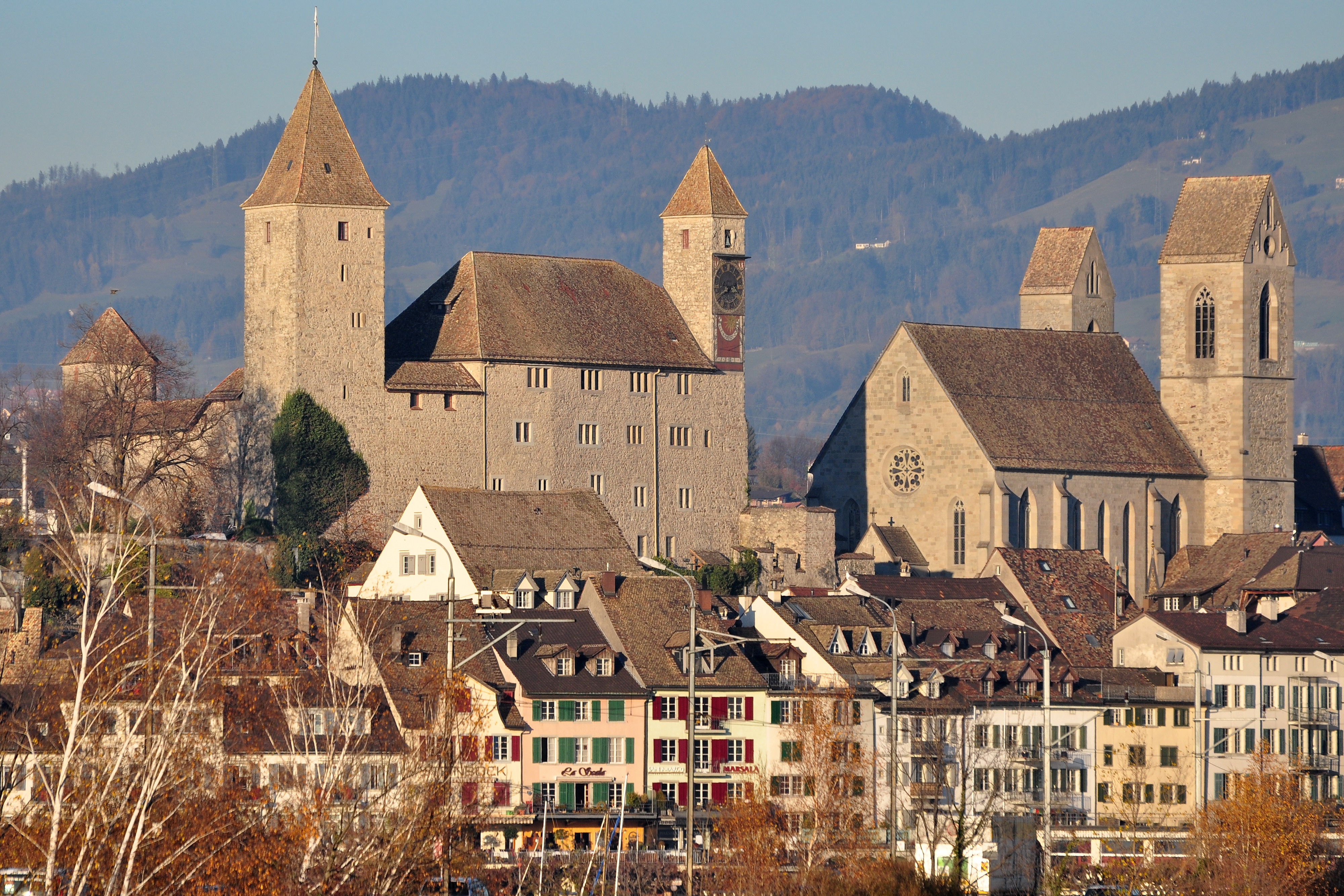 그럼에도 불구하고, 약 1200년경 루돌프 2세와 그의 아들 루돌프 3세는 라퍼스빌 성과 이전의 '엔딩겐' 요새를 건설했다. 공식적으로 1229년, 라퍼스빌의 귀족들이 알텐도르프에서 호수를 건너 라퍼스빌로 이주하면서 마을이 세워졌고, 베팅겐 수도원(1227년)[8]과 마리아첼-부름스바흐 수도원(1259년) 등 일련의 재단 설립이 문서화되었다. 이 시기 성 마틴 부스키르흐는 가문의 교구 교회였으나, 라퍼스빌 성 옆 린덴호프 언덕에 시립교회가 세워지면서 변경되었다.
