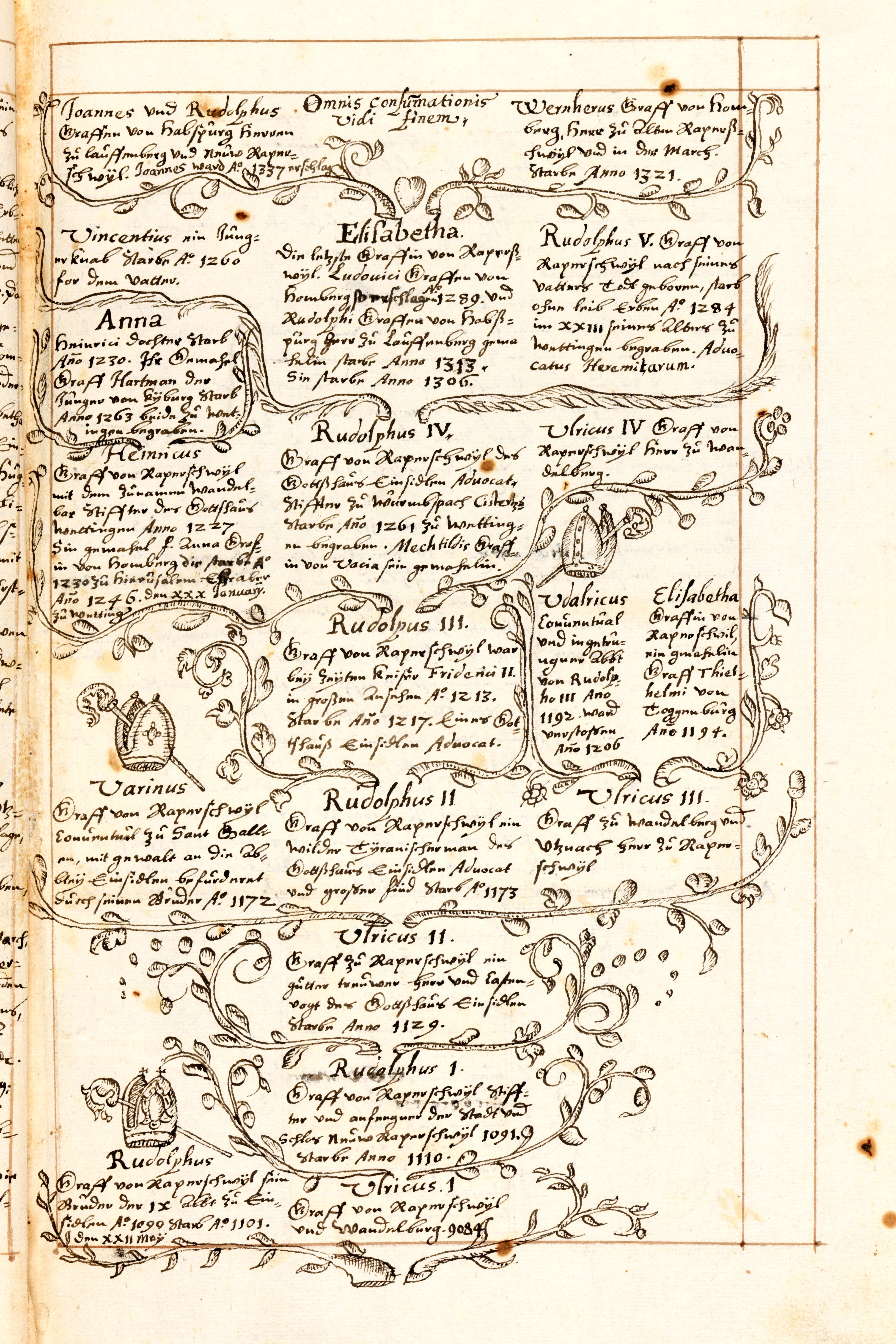 - '''요한 1세''' (1295–1337): 엘리자베스 폰 라퍼스빌과 합스부르크-라우펜부르크의 루돌프의 아들. 라퍼스빌 백작.