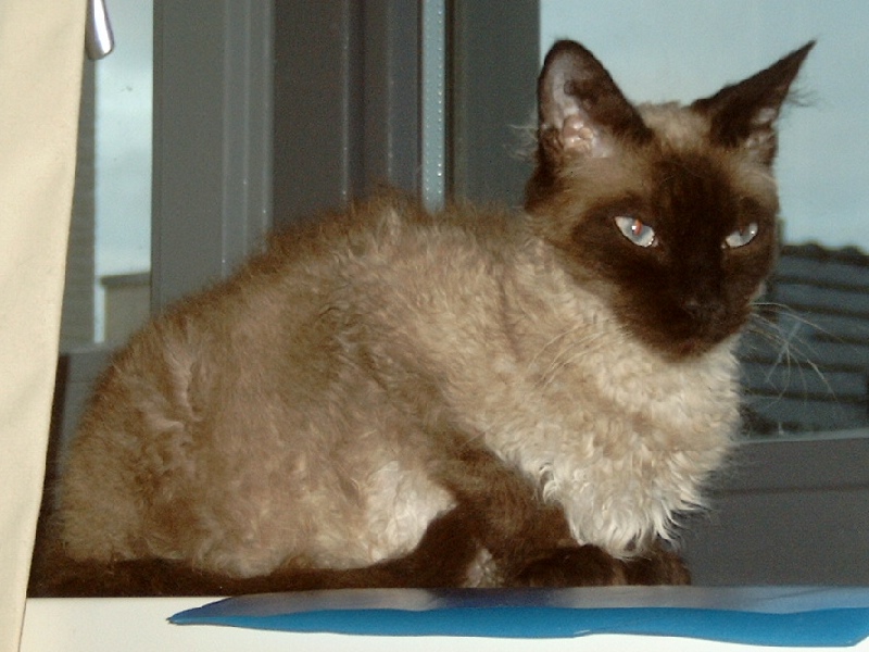 품종 표준[2]은 중간 크기에 다리와 목이 길고, 보기보다 근육질인 외형을 묘사한다.[10] 털은 길거나 짧을 수 있으며[13][14], 장모종과 단모종으로 나뉜다.[10] 다른 렉스 품종처럼 모든 색상과 무늬가 허용되지만,[3] 기원 때문에 태비, 적색, 토티(삼색얼룩) 무늬가 매우 흔하다. 또한 라일락, 초콜릿, 컬러포인트 등 특이한 색상도 인기가 있다. 털은 비단처럼 부드럽고 매끈하며 물결같이 곱슬거리는 모양이지만, 잘 엉키지 않아 관리가 쉽고 알레르기 유발이 적다.[13][14] 이 때문에 일반 고양이보다 인간에게 알레르기 반응을 현저히 덜 일으키는 저자극성 고양이로 알려져 있다. 이 곱슬 털은 우성 유전자에 의한 형질이며, 이 때문에 경우에 따라 직모를 가진 새끼 고양이가 태어날 수도 있다.[10]