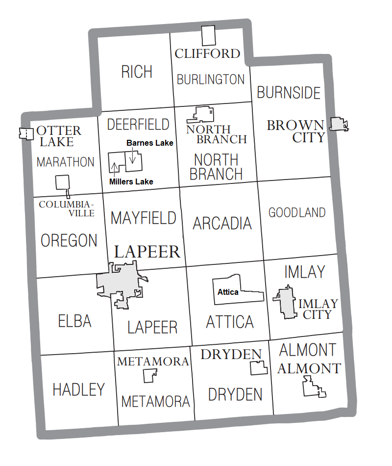 1843년 3월 9일, 라피어 군 최서단의 타운십들이 제네시 군에 합병되었다. 이들은 북쪽에서 남쪽 순서로 포레스트, 리치필드, 데이비슨, 아틀라스 타운십이었다.[7]