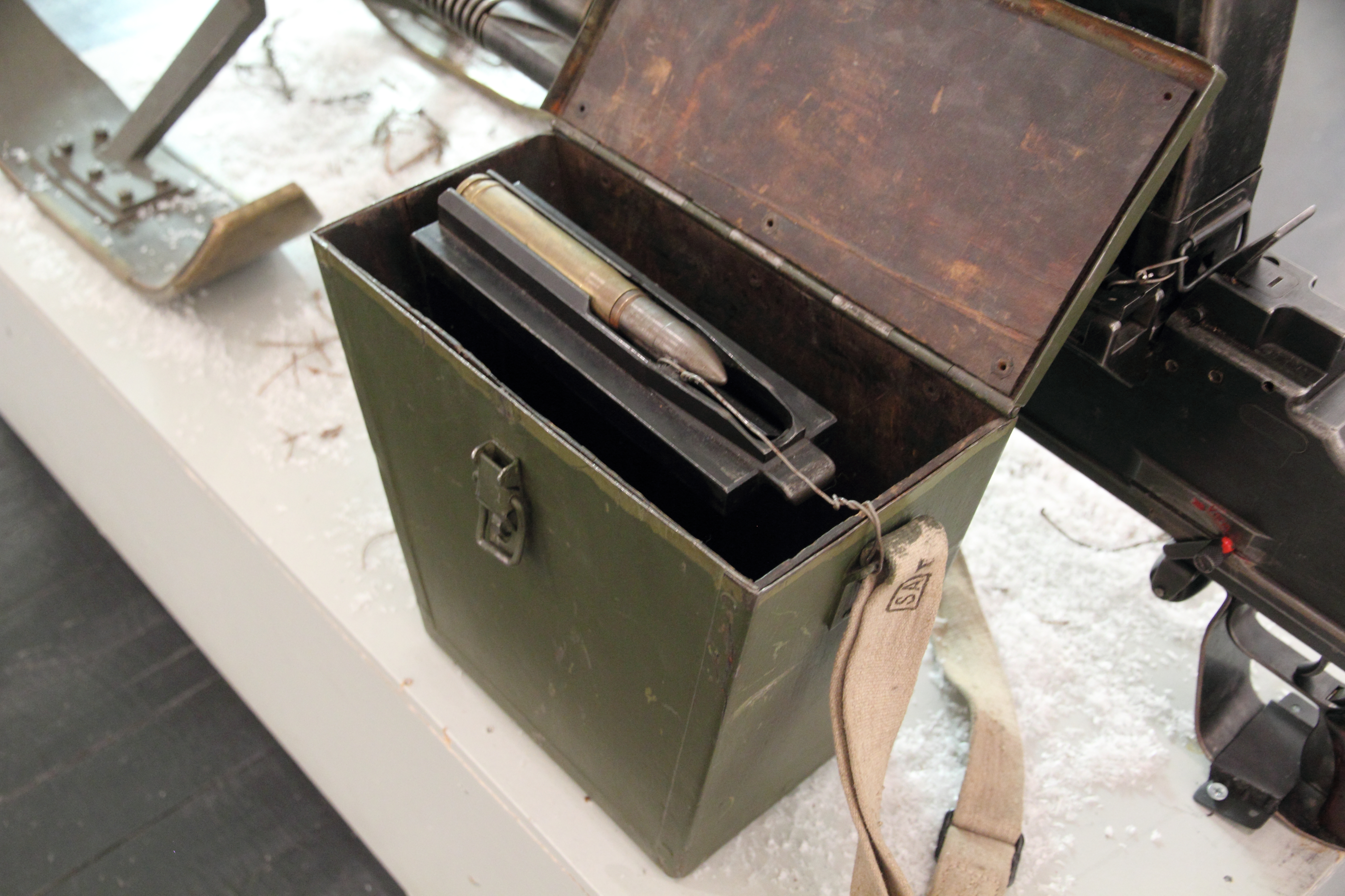 탄창 오른쪽에는 덮개가 있는 관측 슬릿이 있어 남은 탄약 수를 확인할 수 있었다. 제2차 세계 대전 중 대공포 용도로 15발들이 탄창도 나중에 개발되었다.