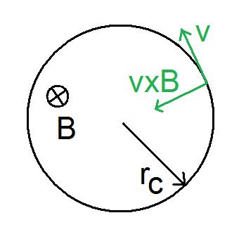 ''z''방향으로 균일한 자기장 \mathbf{B} = B\hat{\mathbf{z}} 가 주어진 ''xy'' 평면을 생각하자. 이 자기장에 대한 자기 퍼텐셜 \mathbf A 는 :\mathbf{A} = xB\hat{\mathbf{y}} 으로 잡을 수 있다. ''xy'' 평면에 갇힌, 전하 q 를 가진 입자를 생각하자. 이 입자의 해밀토니언 은 다음과 같다. [2] [4] :H=\frac1{2m}(\mathbf p-q\mathbf A)^2=\frac1{2m}\left(p_x^2+(p_y-qxB)^2\right) 이 해밀토니언은 ''y''방향 운동량 과 가환한다. :[H,p_y]=0 따라서 p_y 를 그 고윳값으로 대체할 수 있다. p_y 의 고윳값을 고정시키면, 이 해밀토니언은 위치 에너지 :V(x)=(p_y-qxB)^2/2m=\frac1{2m}q^2B^2(x-p_y/qB)^2 를 가지는, 1차원 공간 위에 존재하는 입자다. 이 퍼텐셜은 포물선 꼴이므로, 이는 1차원 양자 조화 진동자 이며, 그 각진동수 \omega 는 :\omega=qB/m 다. 따라서, 주어진 p_y 에 대한 에너지 준위는 다음과 같다. :E_n=\left(\frac1{2}+n\right)\hbar qB/mc 이 준위들을 '''란다우 준위'''라고 한다. [2]속도 '''v'''를 가진 입자의 사이클로트론 궤도 그림. 여기서 '''v'''는 균일한 자기장 '''B''' 하에서 하전 입자(여기서는 양전하)의 고전적 궤적이다. 란다우 양자화는 균일한 자기장 하에 있는 양자 하전 입자를 나타낸다. ## 란다우 게이지 레프 란다우가 도입한 게이지 고정은 균일한 자기장 내의 하전 입자에 자주 사용된다. [2] 란다우 게이지에서 자기 퍼텐셜 \mathbf{A} 는 다음과 같다. :\mathbf{A} = \begin{pmatrix} 0 \\ B\cdot x \\ 0 \end{pmatrix} 이 게이지에서 해밀토니안은 다음과 같다. :\hat{H} = \frac{\hat{p}_x^2}{2m} + \frac{1}{2m} \left(\hat{p}_y - qB\hat{x}\right)^2 + \frac{\hat{p}_z^2}{2m}. 연산자 \hat{p}_y 는 해밀토니안과 교환 가능하므로 고유값 \hbar k_y 로 대체될 수 있다. \hat{z} 는 해밀토니안에 나타나지 않으므로, z-방향 운동은 자유 운동이다. 사이클로트론 공명 주파수 \omega_c=qB/m 를 이용하면 해밀토니안은 다음과 같이 간단하게 표현된다. :\hat{H} = \frac{\hat{p}_x^2}{2m} + \frac{1}{2} m \omega_{\rm c}^2 \left( \hat{x} - \frac{\hbar k_y}{m \omega_{\rm c}} \right)^2 + \frac{\hat{p}_z^2}{2m}. 이는 위치 공간에서 포텐셜의 최솟값이 x_0=\hbar k_y/m\omega_c 만큼 이동한 양자 조화 진동자 의 해밀토니안과 같다. 조화 진동자 포텐셜을 변환해도 에너지는 영향을 받지 않으므로, 이 시스템의 에너지는 다음과 같다. [4] :E_n=\hbar\omega_{\rm c}\left(n+\frac{1}{2}\right) + \frac{p_z^2}{2m},\quad n\geq 0. 에너지는 양자수 k_y 에 의존하지 않으므로, 유한한 수의 축퇴가 존재한다. 동일한 n 값을 갖는 각 파동 함수 집합을 '''란다우 준위'''라고 한다. 파동 함수는 y 방향의 운동량 고유 상태와 x 방향으로 x_0 만큼 이동한 조화 진동자 고유 상태 |\phi_n\rangle 의 곱으로 인수 분해된다. :\Psi(x,y,z) = e^{i(k_y y+k_z z)} \phi_n(x-x_0) 여기서 k_z = p_z / \hbar 이다. 전자의 상태는 양자수 n , k_y , k_z 로 특징지어진다. ## 대칭 게이지 ''z''방향으로 균일한 자기장 \mathbf B=B\hat{\mathbf z} 가 주어진 ''xy'' 평면에서, 자기 퍼텐셜 \mathbf A 를 대칭 게이지로 선택하면 다음과 같다. :\hat{\mathbf{A}} =\frac{1}{2} \mathbf{B}\times \hat{\mathbf{r}} = \frac{1}{2}\begin{pmatrix} -By\\ Bx \\0 \end{pmatrix}. 무차원 길이와 에너지로 표현하면, 해밀토니안은 다음과 같이 표현할 수 있다. :\hat{H} = \frac{1}{2} \left[\left(-i\frac{\partial}{\partial x} + \frac{y}{2}\right)^2 + \left(-i \frac{\partial}{\partial y} - \frac{x}{2}\right)^2 \right] 다음 연산자들을 정의하자.\begin{align} \hat{a} &= \frac{1}{\sqrt{2}} \left[\left(\frac{x}{2} + \frac{\partial}{\partial x}\right) -i \left(\frac{y}{2} + \frac{\partial}{\partial y}\right)\right] \\ \hat{a}^{\dagger} &= \frac{1}{\sqrt{2}} \left[\left(\frac{x}{2} - \frac{\partial}{\partial x}\right) +i \left(\frac{y}{2} - \frac{\partial}{\partial y}\right)\right] \\ \hat{b} &= \frac{1}{\sqrt{2}} \left[\left(\frac{x}{2} + \frac{\partial}{\partial x}\right) +i \left(\frac{y}{2} + \frac{\partial}{\partial y}\right)\right] \\ \hat{b}^{\dagger} &= \frac{1}{\sqrt{2}} \left[\left(\frac{x}{2} - \frac{\partial}{\partial x}\right) -i \left(\frac{y}{2} - \frac{\partial}{\partial y}\right)\right] \end{align} 이 연산자들은 다음 교환 관계를 만족한다. :[\hat{a}, \hat{a}^{\dagger}] = [\hat{b},\hat{b}^{\dagger}] = 1. 이 연산자들로 표현하면, 해밀토니안은 다음과 같이 쓸 수 있다. : \hat{H} = \hbar\omega_{\rm c}\left(\hat{a}^{\dagger}\hat{a} + \frac{1}{2}\right), 여기서 \omega_{\rm c}=qB/m 는 사이클로트론 진동수이다. 란다우 준위 지수 n 은 연산자 \hat{N}=\hat{a}^{\dagger}\hat{a} 의 고윳값이다. \hat{b}^{\dagger} 의 적용은 n 을 유지하면서 각운동량 m_z 를 1만큼 증가시키는 반면, \hat{a}^{\dagger} 의 적용은 동시에 n 을 증가시키고 m_z 를 1만큼 감소시킨다. 양자 조화 진동자 와의 유추는 해를 제공한다. :\hat{H} |n,m_z\rangle = E_n |n,m_z\rangle, 여기서 :E_n = \hbar\omega_{\rm c}\left(n + \frac{1}{2}\right) 이고 :|n,m_z\rangle = \frac{(\hat{b}^{\dagger})^{m_z+n}}{\sqrt{(m_z+n)!}} \frac{(\hat{a}^{\dagger})^{n}}{\sqrt{n!}}|0,0\rangle. 위 상태가 다음의 파동 함수에 비례하는 것을 확인할 수 있다. :\psi_{n,m_z}(x, y) = \left( \frac{\partial}{\partial w} - \frac{\bar{w}}{4} \right)^n w^{n + m_z} e^{-|w|^2 / 4} 여기서 w = x - i y 이다. 특히, 최저 란다우 준위 n = 0 은 가우시안을 곱한 임의의 해석적 함수로 구성되며, \psi(x,y) = f(w) e^{-|w|^2/4} 이다. 이 결과는 란다우 게이지에서의 결과와 동등하다. ## 축퇴 (Degeneracy) ''z''방향으로 균일한 자기장 \mathbf B=B\hat{\mathbf z} 가 주어지는 경