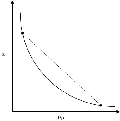 위의 관계는 질량 및 운동량 보존에 대한 Hugoniot 방정식과 결합될 때, ''p''-''v'' 평면에서 충격 Hugoniot을 결정하는 데 사용될 수 있으며, 여기서 ''v''는 비체적(단위 질량당)이다.[19]
