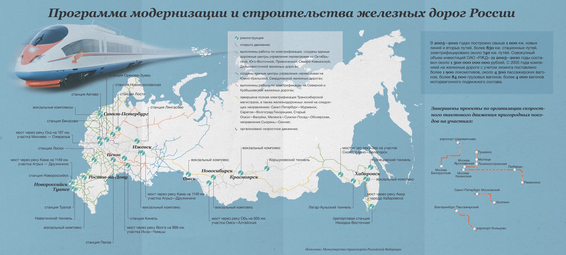 2008년 러시아 정부는 철도 네트워크를 확장하고 현대화하기 위한 투자 계획인 전략 2030을 승인했다.[19] 같은 해부터 철도 운송 구조 개혁의 일환으로 운송 활동의 서비스 인프라 분리와 경쟁 환경의 출현과 함께 러시아 철도는 수직적 지향적 지주 회사로 변모했다.[21]