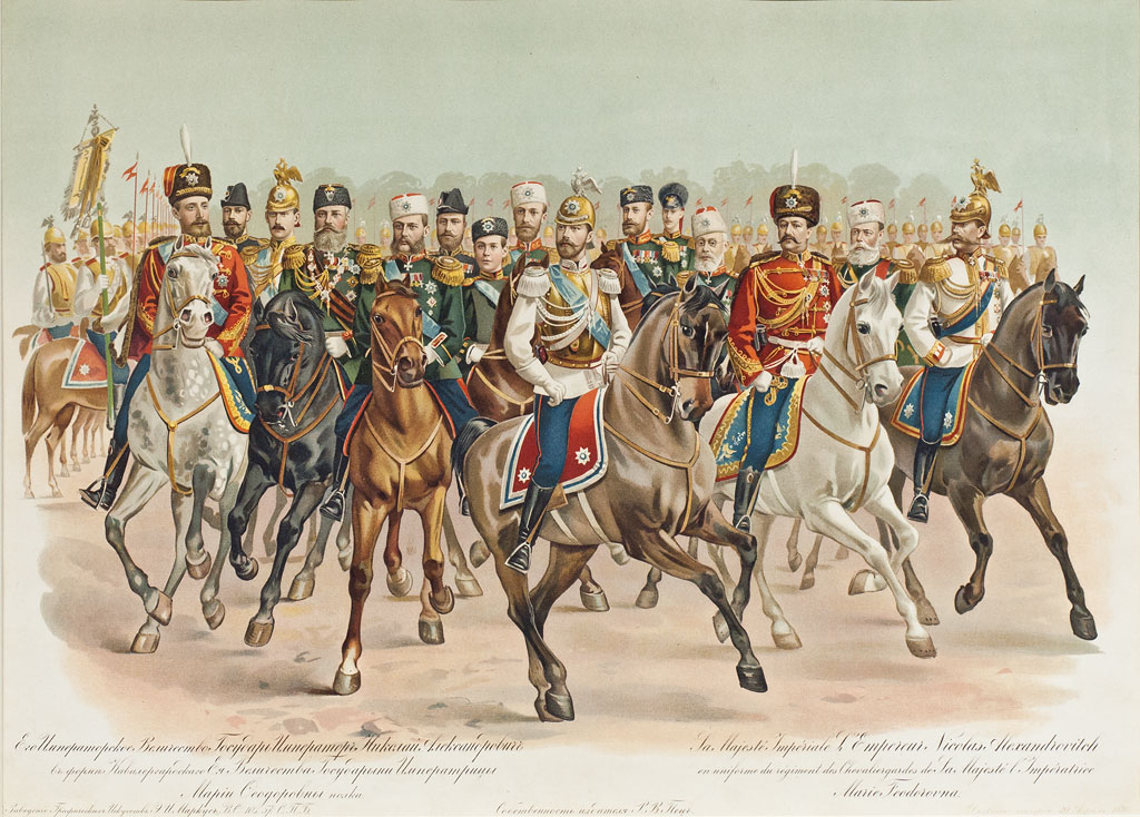 1913년, 모든 연대에 야전 회색(녹색 회색) 군복이 지급되었고, 제국 근위대, 기병, 코사크, 기병 포병 부대는 별도의 예복을 유지했다. 쿠반 및 테레크 코사크는 야전 군복 블라우스 대신 체르케스카를 입었다.